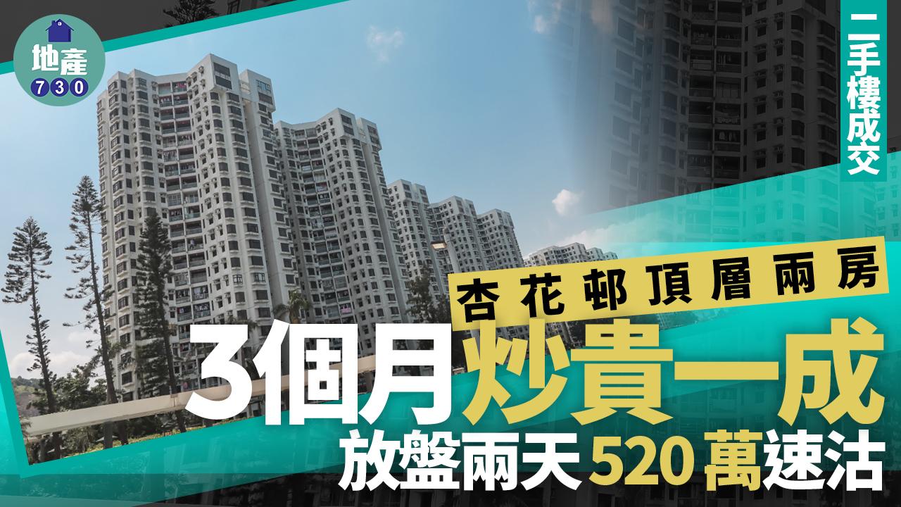 杏花邨頂層兩房3個月炒貴一成 放盤兩天520萬速沽|二手樓成交