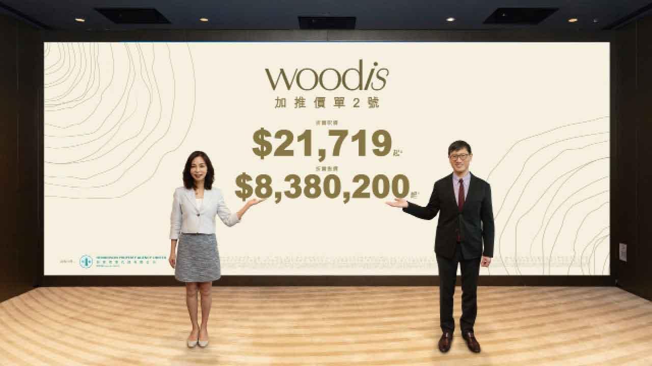 恒基地產(012)旗下灣仔「woodis」同日加推2號價單共30伙,涵蓋28伙兩房及2伙三房,實用面積377至598方呎。扣除最高8%折扣後,折實價838.02萬至1,373.28萬元,折實呎價21,719至25,494元,折實平均呎價23,508元。入場單位為7樓C室兩房,實用面積377方呎,折實呎價22,228元。