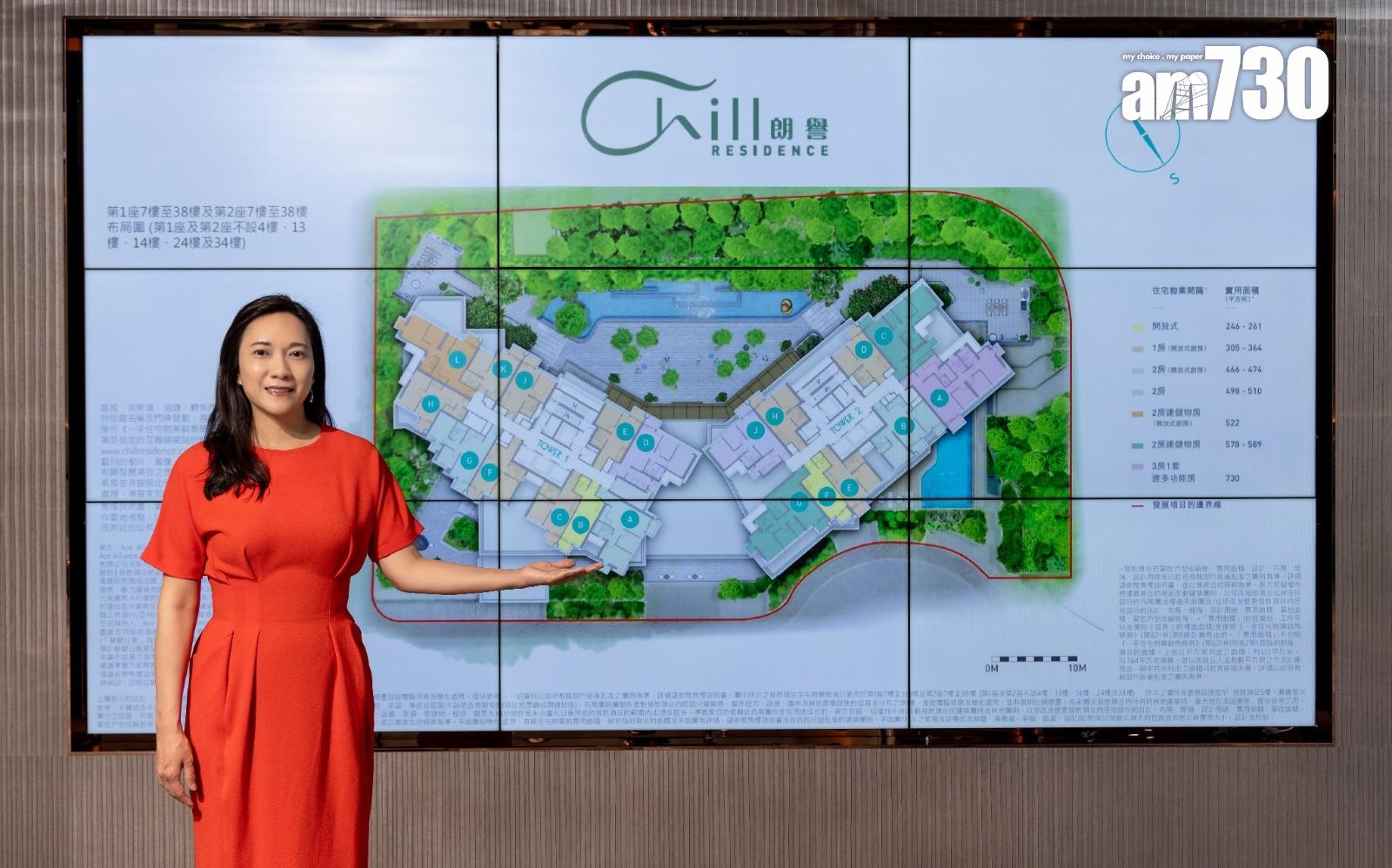 朱美儀稱,朗譽提供634伙,標準單位戶型涵蓋開放式至三房,實用面積介乎246至730方呎,主打一房及兩房戶型,合共佔全盤近八成半;另提供3伙頂層特色戶,實用面積由714至1,601方呎。每戶單位均設露台及大幅觀景玻璃窗戶,項目預計關鍵日期為2025年3月31日,樓花期約28個月。