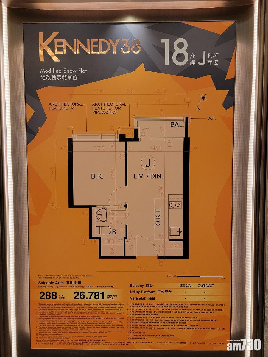 由新鴻基地產(016)、會德豐地產及恒基地產(012)合作發展的堅尼地城KENNEDY 38最快本周公布首張價單,發展商早前率先向傳媒開放三個示範單位,包括1個經改動示範單位及2個無改動示範單位,涉開放式及一房間隔。