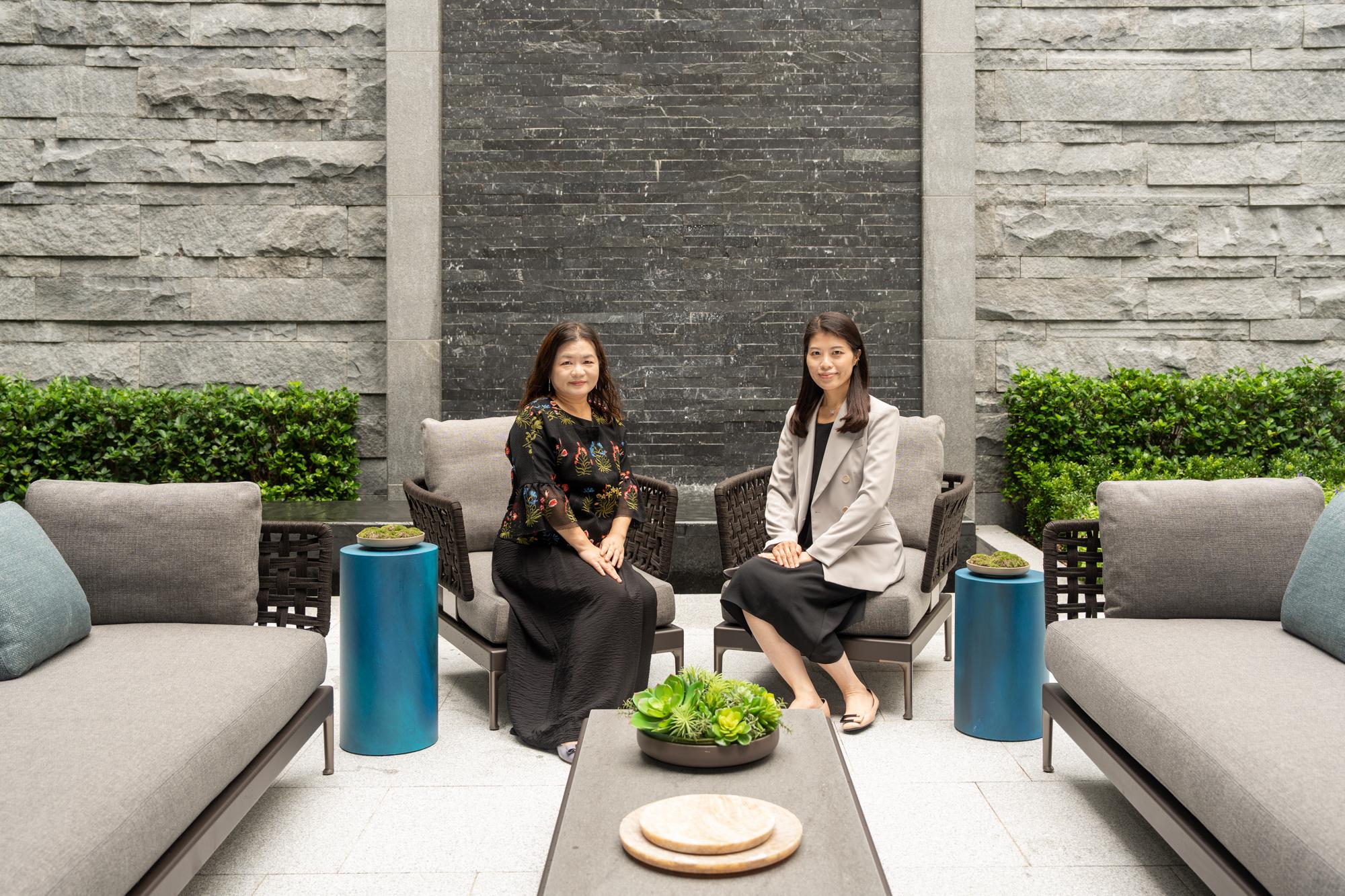 林海山城迄今以招標形式售出17伙,總成交金額近4.36億元;圖右為葉慕貞,左為林紅。