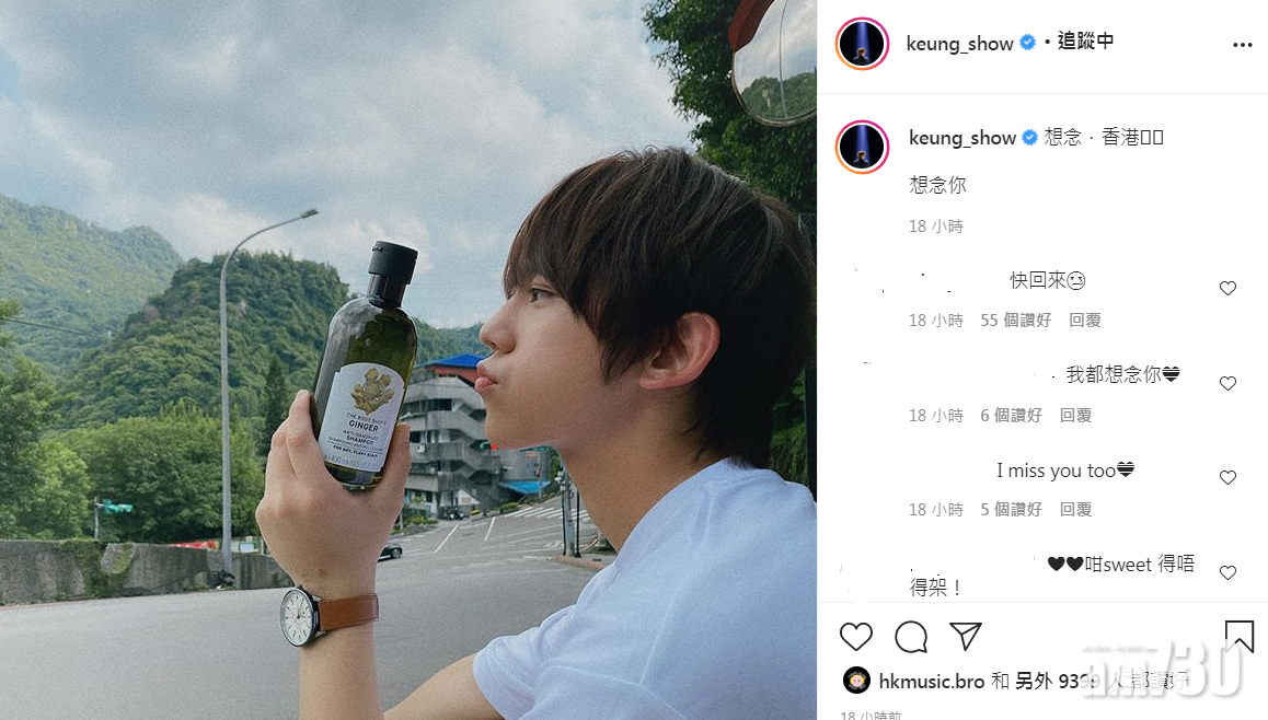目前身在台灣拍劇的MIRROR成員姜濤、Anson Lo(盧瀚霆)和Stanley(邱士縉),不時各自開live跟粉絲隔空傾偈。雖然3子住在同一屋簷下,但由於拍劇通告不同,甚少一起亮相,昨晚他們首次齊人外出吃飯,飯後更即興開live合唱小鬼(黃鴻升)的名曲之一《不屑》。在正式開始前,Anson Lo和Stanley雖說對歌曲不太熟,但姜濤是小鬼的粉絲,在他的領唱以及經理人阿海的結他伴奏下,3人合力唱完整首歌。不過,3子背負「偶包」,戴帽又戴口罩包到實,幸他們亦非常「識做」,昨日先後出Po,姜濤表示想念香港,Anson Lo掛念舞台、Stanley則大派福利騷肌,讓粉絲大飽眼福。