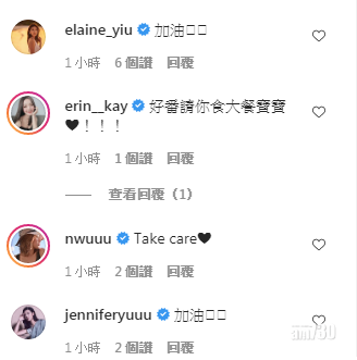 不少圈中朋友留言打氣,包括曾被狗咬傷面的姚子羚。