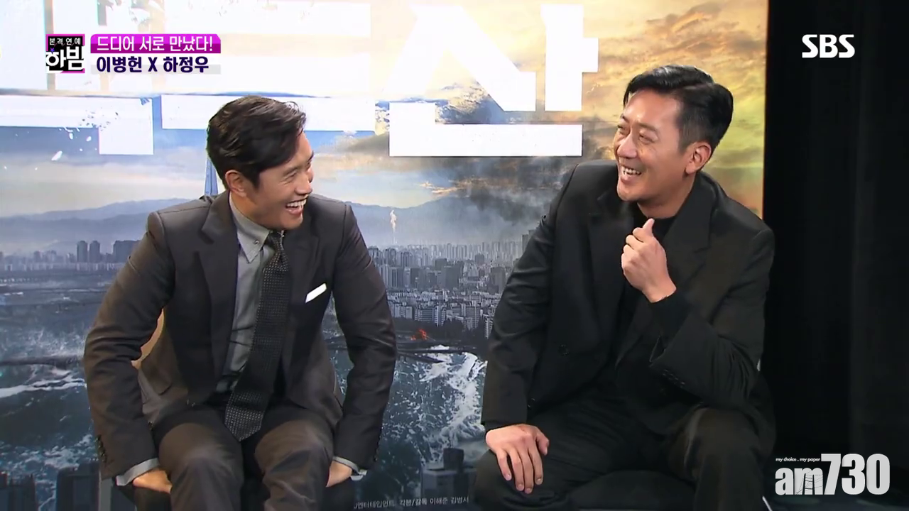 《與神同行》導演金容華監製、集合兩大型男河正宇和李炳憲、《屍殺列車》、「爆肌暖男」馬東石、裴秀智等人氣韓星主演的災難片《白頭山:火山浩劫》,鐵定於明年元旦在香港上映。其中最令人關注是河正宇和李柄憲首次合作,近日兩人積極為新片造勢宣傳,早前接受韓媒訪問,大玩食字爛gag放笑彈,當被問到有否看對方作品時,搶先回答的河正宇竟然記錯前輩李炳憲的演出作品。當兩人被要求向觀眾公開承諾,若票房理想如何回讉觀眾時,河正宇即時向李炳憲挑機,推薦兩個爆笑方案,「觀影人次超過500萬即剃光頭,超過1000萬更要拔門牙。」觀乎抵死中展現無敵默契的訪問,難怪河正宇揚言《白頭山》是災難與幽默並存的電影,至於兩人如何「找數」,則要拭目以待。