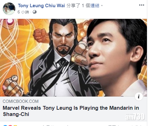 千呼萬喚,Marvel首部華人超級英雄電影 (Shang-Chi and the Legend of the Ten Rings) 《暫譯:上氣》終於落實選角,Marvel今日在美國聖地牙哥的動漫展上,公布「第四階段」的作品陣容,並宣布鐵定由梁朝偉演反派角色滿大人(Mandarin),影帝梁朝偉進軍國際參演,自然是教港人期待。不過,由於滿大人是超級英雄「上氣」的邪惡父親,消息公布後,即惹來大陸網民抨擊,大罵偉仔辱華,電影未開拍已群起杯葛,當中有留言指「角色是西方妖魔化中國的產物」、「梁朝偉這麼缺錢嗎?為了錢臉都不要了!」、「辱華影片我是不會看的,廣電給點力」。而飾演梁朝偉兒子「上氣」一角的,則是哈爾濱出生後移民加拿大的30歲華裔演員劉思慕(Sam Liu),電影計劃於2021年公映。