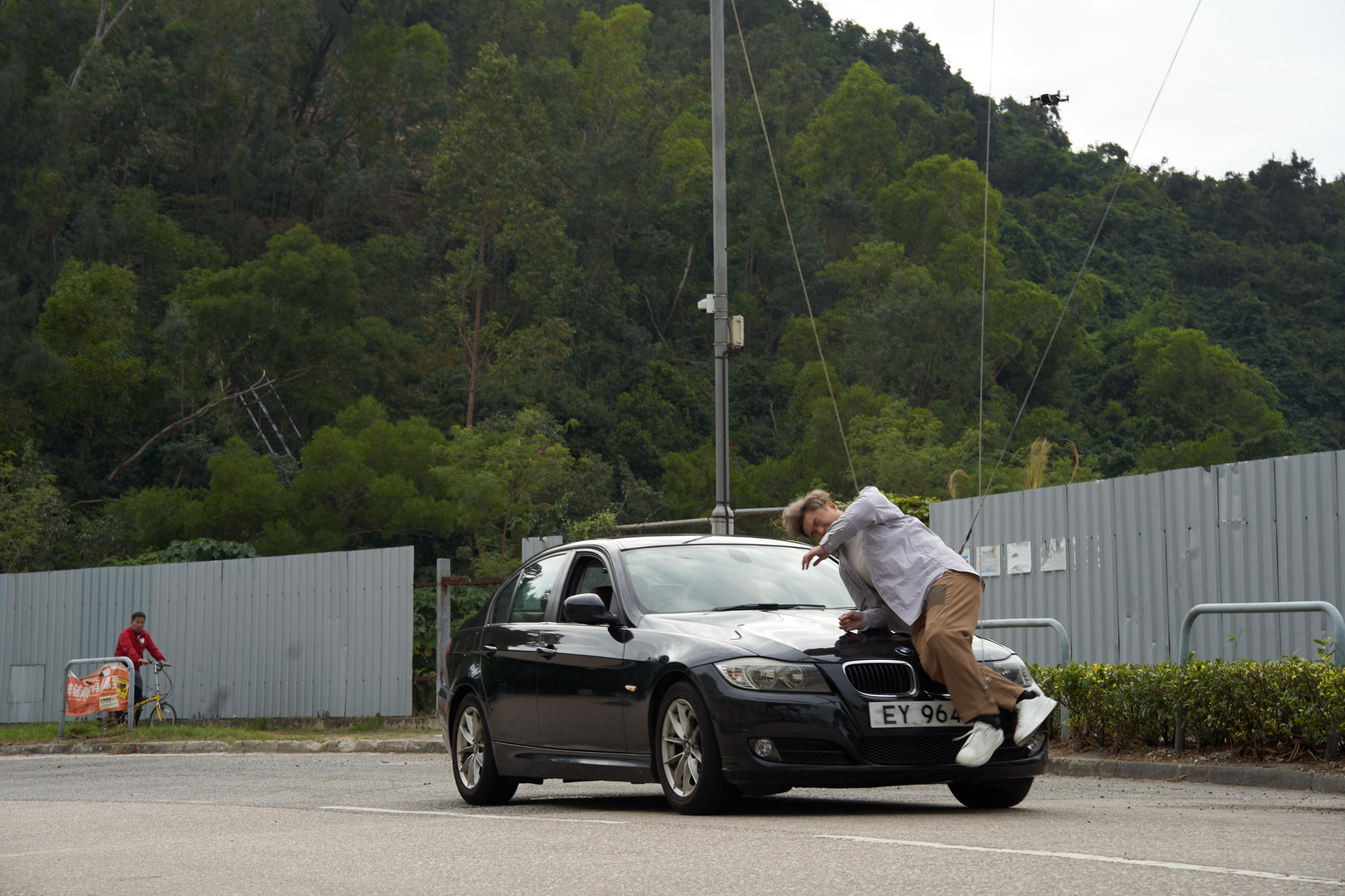 他更展示當日拍攝撞車場口的傷勢,完成是無忽好肉,「好幸運博Sir搵咗成家班幫手拉威哋,先至完成到呢個好震撼嘅場口。」拍攝當日,旨呈被多條威哋吊起,並需在私家車駛過來時,整個人需要在車上翻幾翻。最後經過數十次的「撞車」,旨呈才成功收工,他說︰「其實成個過程,我真係被撞到飛起,我媽知道之後,鬧到我飛起,佢狂鬧『我生咗個仔咁多年,你都未報答我、孝順父母呀!你就撞到咁!』我知佢係心痛嘅,想喺呢度多謝媽咪!」他希望影片可以勝出今次比賽,之後再下一城拍一部完整的電影。
