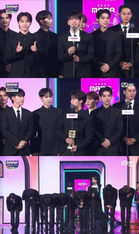 SEVENTEEN獲獎,向fans鞠躬致謝。
