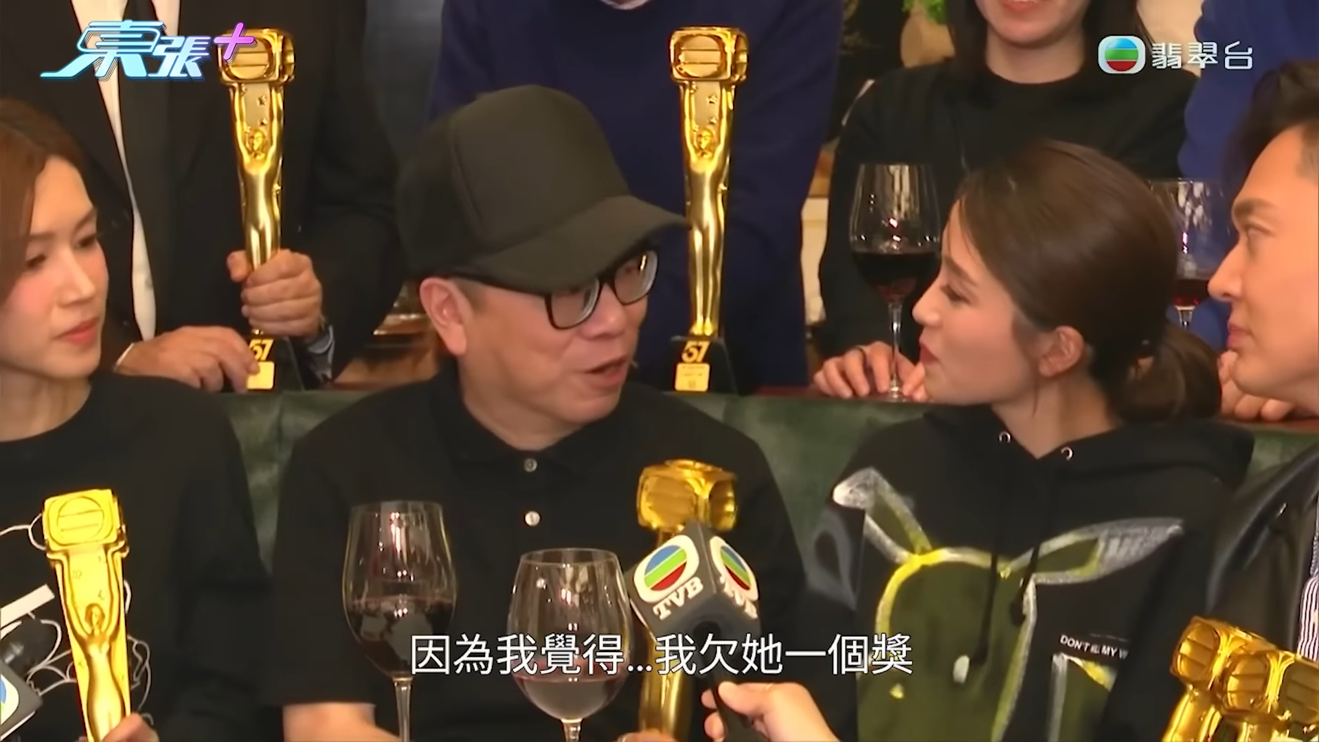 昨日(20)《東張西望》播出一眾藝人出席慶功宴的花絮,鍾澍佳與《反黑英雄》一眾藝員及幕後受訪。然而,姚子羚未能憑此劇封后,她接受訪問時隔住MON都感覺到她的失落。鍾澍佳表示欠了姚子羚一個獎,他說︰「我要多謝姚子羚,我欠佢一個獎,因為『林雪兒』係令套戲圓滿一塊好重要嘅拼圖,子羚真係做得好好。」子羚表示很感恩遇到「林雪兒」,「雖然今次有啲遺憾,唔可以同大家一齊攞獎」,但見到團隊拎到這麼多獎,一樣開心。