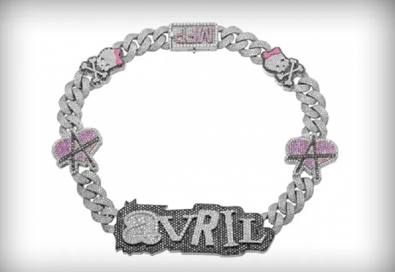 鑽石頸鍊刻有Avril名字。