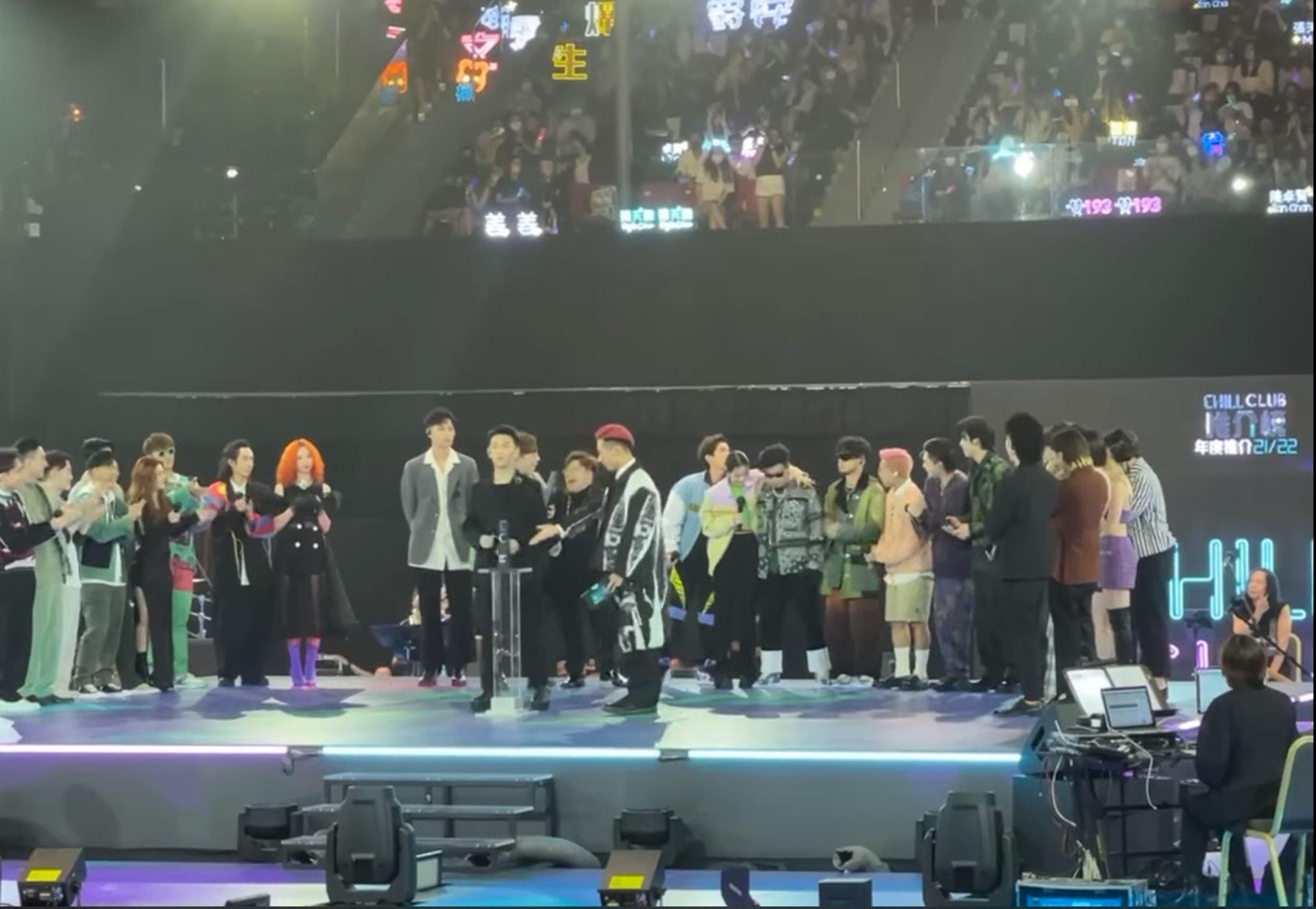 「試當真」成員蘇致豪和許賢組成的MC $oHo & KidNey,有份角逐「Chill Club年度新人獎」,當大會主持駱振偉宣布金獎「得獎者係MC」時,令MC $oHo & KidNey一度踏前。由於駱振偉停頓了一下才再說「張天賦」,MC $oHo & KidNey隨即停步,而在旁的P1X3L、陳凱詠、Lokman和湯令山一邊笑一邊安慰,而跟他們相隔數個身位的肥仔更笑到彎腰,並拉埋Edan一齊笑。
