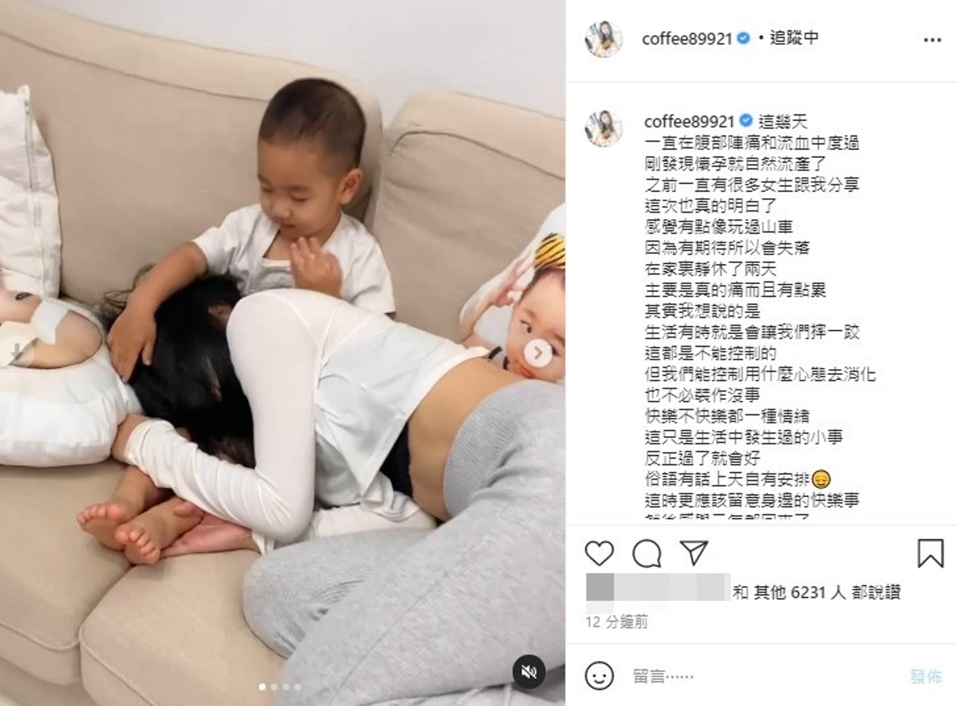 曾經流產的Coffee直言有點驚恐情況,起初也不太自覺,但看YouTube留言才開始意識情緒或出現狀況,「佢哋都會擔心我係咪有少少產前抑鬱,已經有少少嗰種,覺得自己唔OK,都真係嘅,因為我會無啦啦揸車會喊,可能會做做吓嘢,個人out focus會諗,即係我會無啦啦流眼淚。我覺得係一個先兆,咁所以我自己都應該去stop呢件事,雖然我好想佢stop,其實我一路都冇發洩出嚟,因為我唔想身邊嘅人擔心,所以當我拍片嘅時候喊,我自己都不能理解。」她表示不後悔拍片公開狀況,因收到很多鼓勵和有經驗的媽媽分享意見心得。