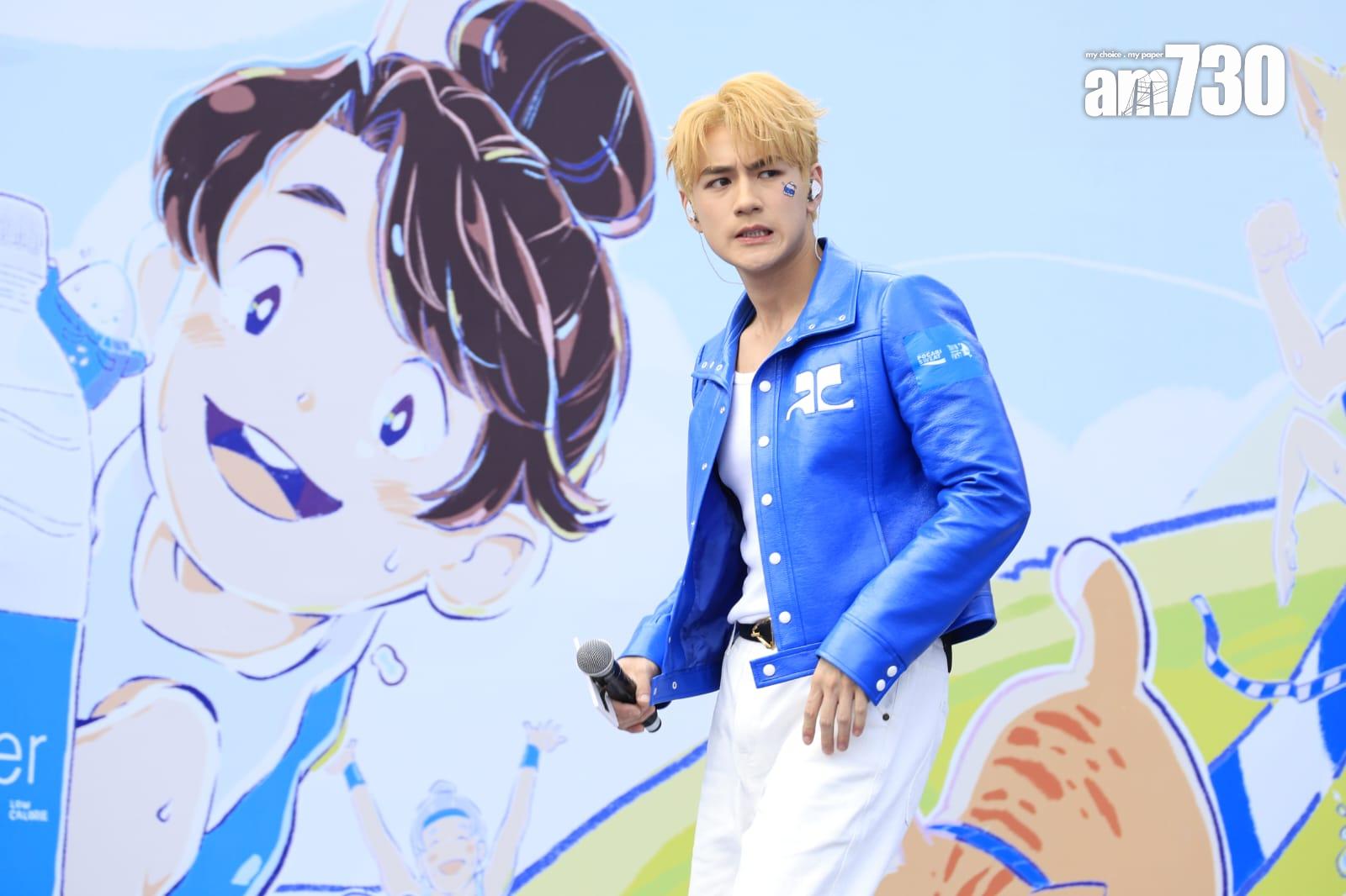 魏浚笙(Jeffrey)今日(3日)於西九出席「寶礦力水特跑步祭」活動,他以一身藍白裝束配一頭金髮現身,並擔任表演嘉賓。對於再次戶外演唱,他笑言「陽光照亮我的心」。提到他日前出席LV時裝騷活動,場面星光熠熠,他把握機會集郵,跟發哥合照,Jeffrey讚不絕口:「佢嘅笑容融化我的心!」不過因現場很多人輪候,他未能自我介紹。他坦言是發哥影迷,渴望有機會合作,最深刻的電影是《賭神》,笑言也有模仿對方。