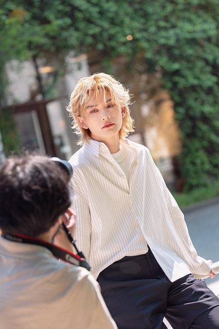 Jeremy上次與Guerlain合作後,獲Unicorns不斷敲碗要求再次合作,促成今次衝出香港為花草水語系列香水宣傳照的安排。這次拍攝選址東京街頭,拍攝當日烈日當空,攘往熙來,團隊工作人員都大汗淋漓,但Jeremy 為求效果完美,即使被要求以高難度角度拍攝,也奮身在酷熱的木凳鐵扶手上擺甫士,拍足12小時仍能保持一貫的專業態度,展現最美神態。 其後,拍攝團隊前往一條充滿花草樹木的街道,群花綻放,猶如城市中的小花園,Jeremy 亦難擋大自然的美,趁著工作人員準備期間,忍不住在花叢間舉起「臉頰愛心」手勢與繡球花拍照,笑得燦爛亦突顯其赤子之心。
