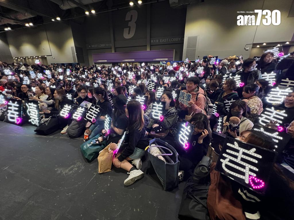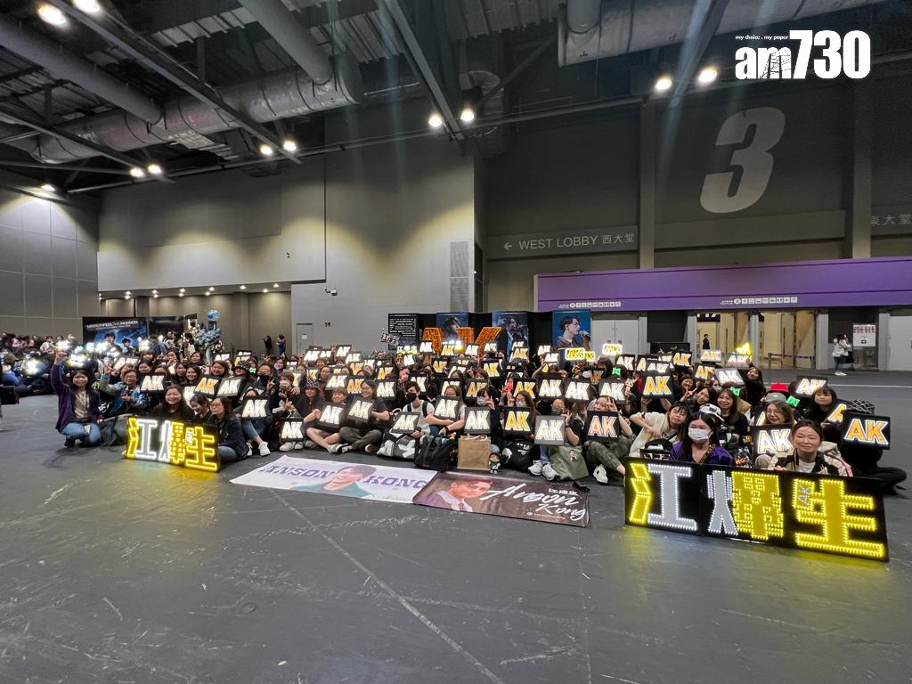 MIRROR開騷,12位鏡仔的歌迷會提早到場。圖為神徒、姜糖及Hellosss。