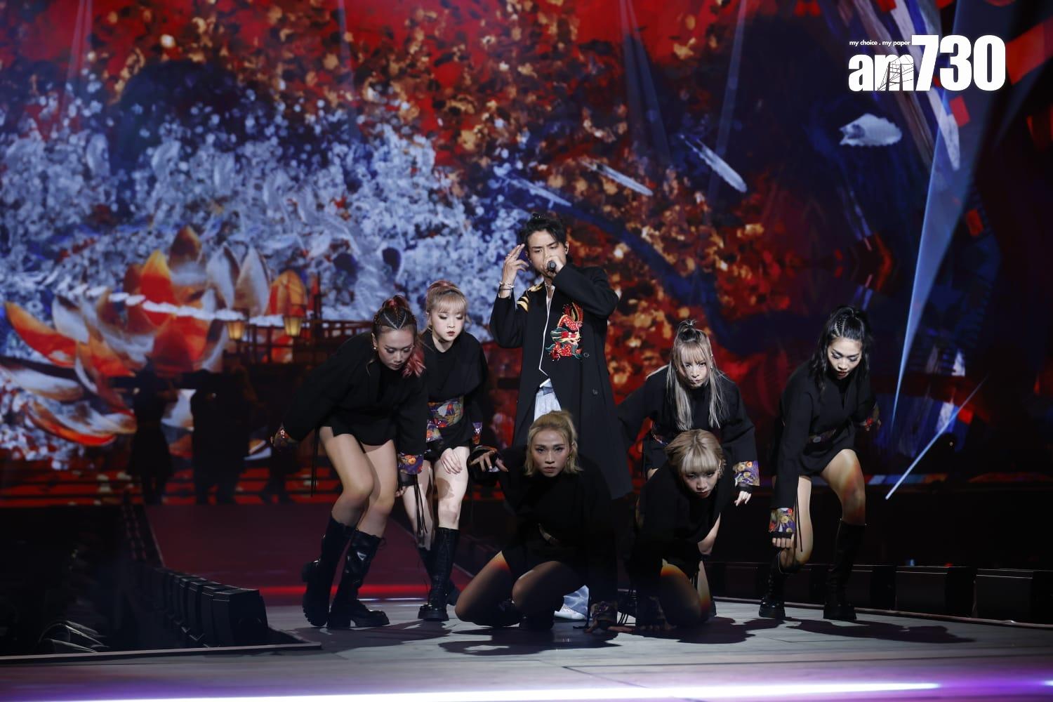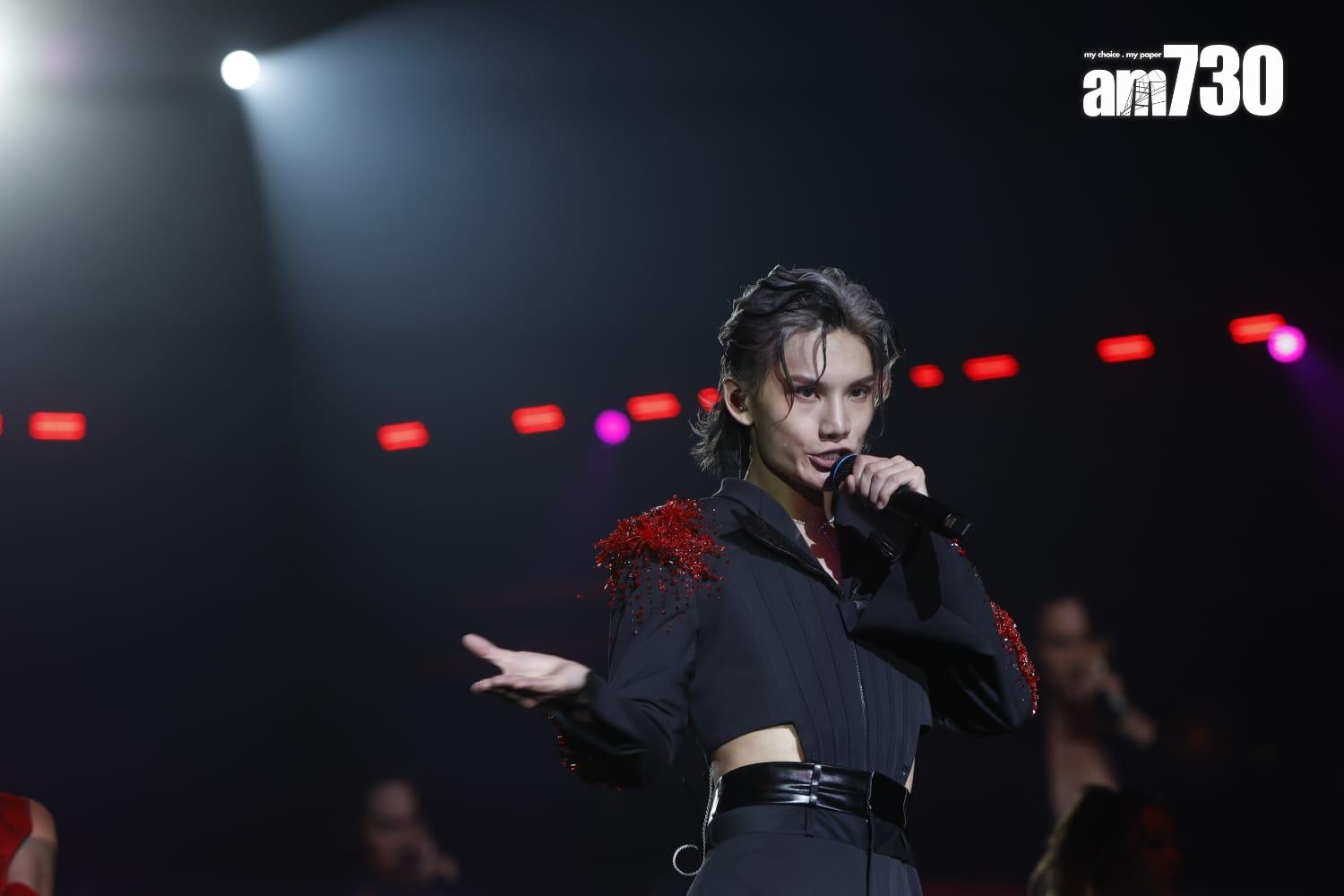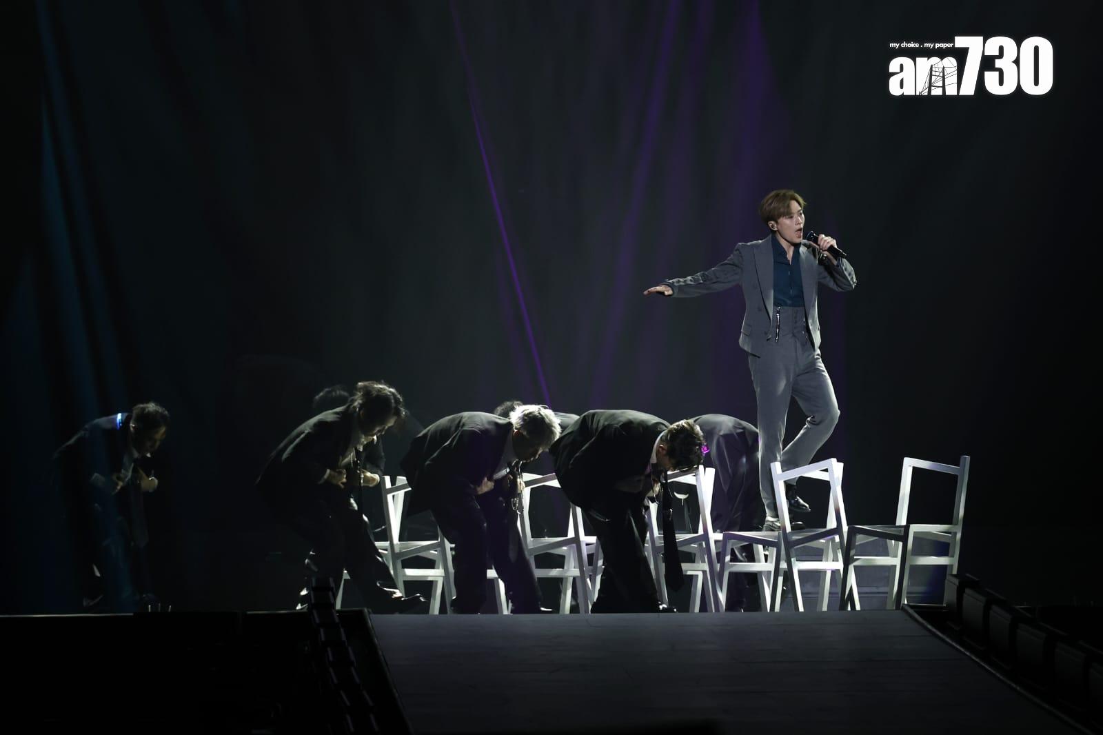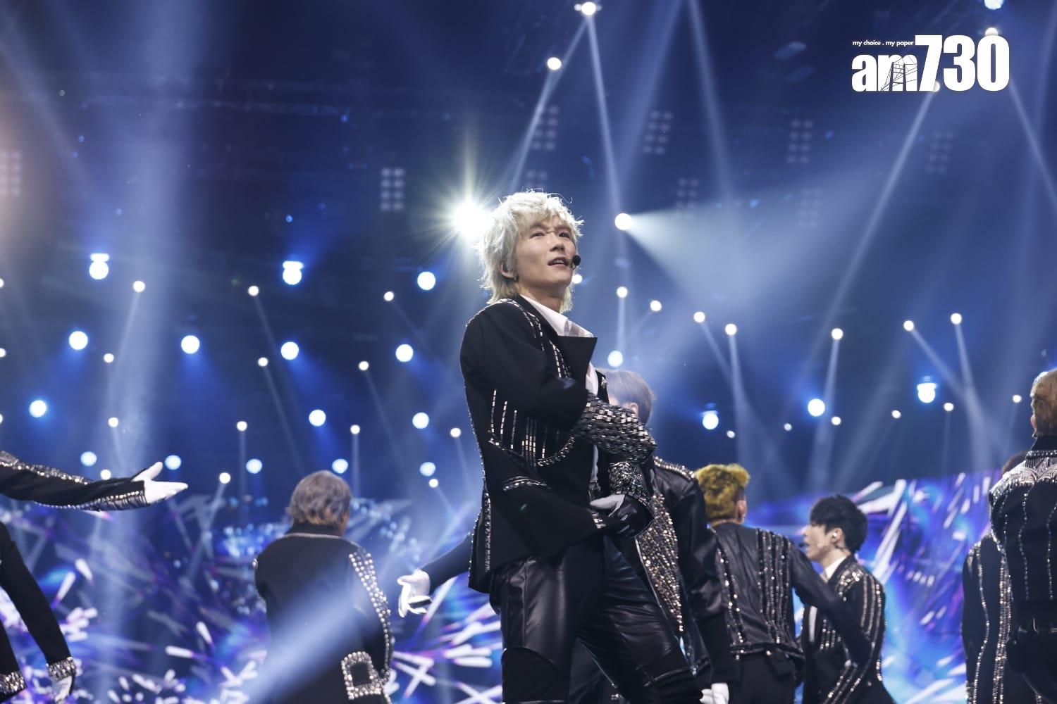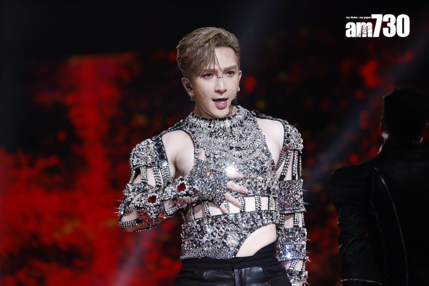 到AK的個人環節,他坐在一頂充滿日本風的八人大橋上唱《Keep Rollin’》,他更一度脫下日本風外套,露出透視背心,胸前兩點若隱若現。之後他換上淺色西裝跟女dancer大跳貼身舞,再次令現場女觀眾尖叫連連。