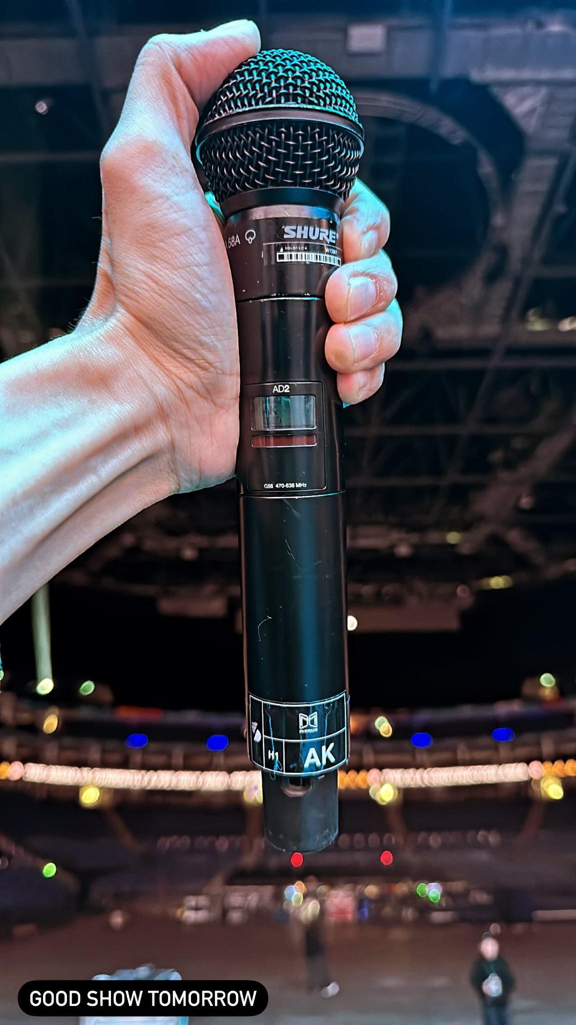 其後他們上載到表演場地O2彩排的情況,AK手執咪高峰,呂爵安(Edan)大晒入場證,他和姜濤一樣見到韓國男團BTS的海報及手燈掛飾,興奮地自拍起來。