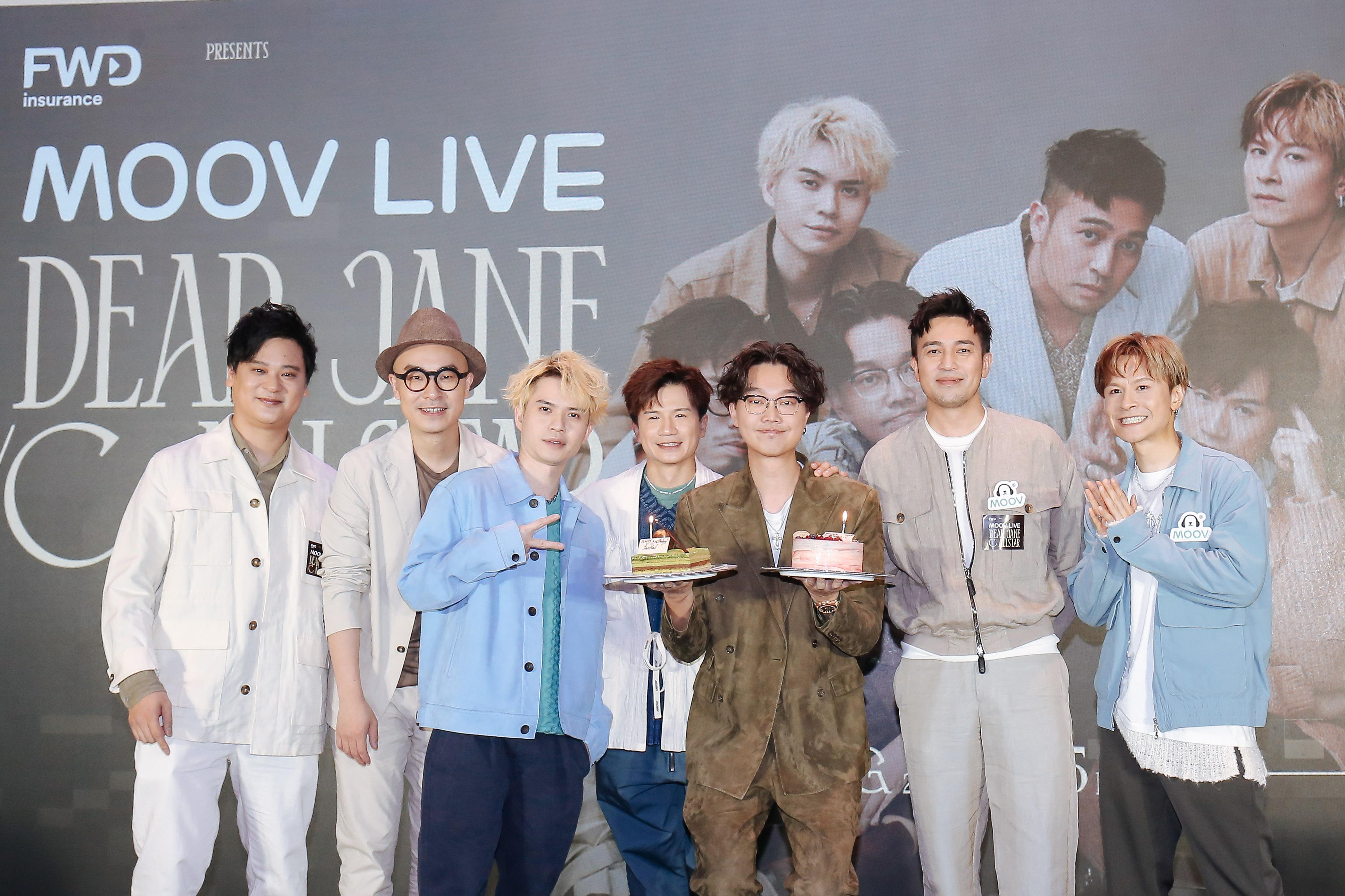 Dear Jane和C AllStar首度聯乘開演唱會,將於8月24日在灣仔會展舉行一場《MOOV LIVE DEAR JANE x C ALLSTAR》音樂會,兩隊成員包括Dear Jane的Tim (黃天翱) 、Howie (翁厚樑)、Jackal (伍漢邦) 和Nice (黎俊華),以及C AllStar的陳健安(On仔)、梁釗峰和King(吳崇銘)今日齊齊現身記者會公布有關詳情,同時為今日生日的Jackal慶祝,惟Jase(何建曦)因工作未能出席。