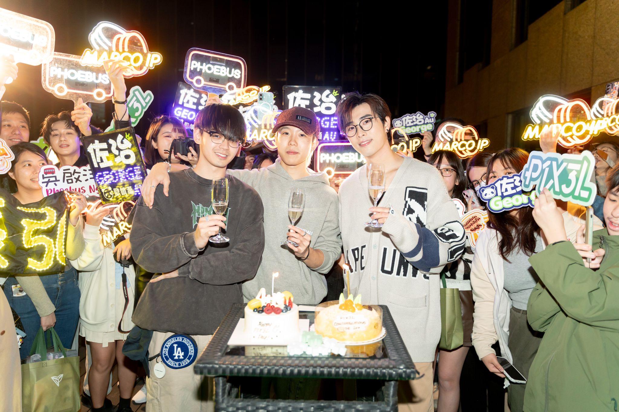 P1X3L在室內展覽區參觀後,則和一眾Puzzles 轉到戶外露台一同打咭巨型backdrop佈置及大合照,夜幕正好低垂,華燈初上,現場可見有多部全方位泡泡噴射器同時啟動,P1X3L戴著螢光綠色的發光眼鏡閃亮登場,在眾多應援燈牌和漫天泡泡下和一眾Puzzles 合影留念。影畢又有fans捧出祝賀蛋糕及香檳酒和偶像一同慶祝。