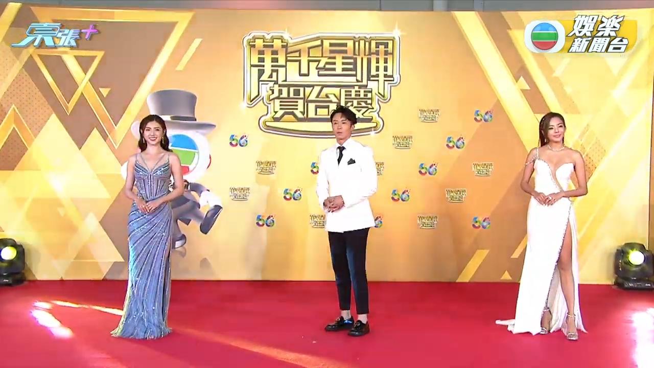 《萬千星輝賀台慶》今日(19日)在電視城舉行,晚上6時左右多位盛裝打扮的藝人踏上紅地氈,由肥媽及車婉婉率領一眾《中年好聲音》第一季的參賽者打頭陣出場,當中以曹敏寶最為性感。