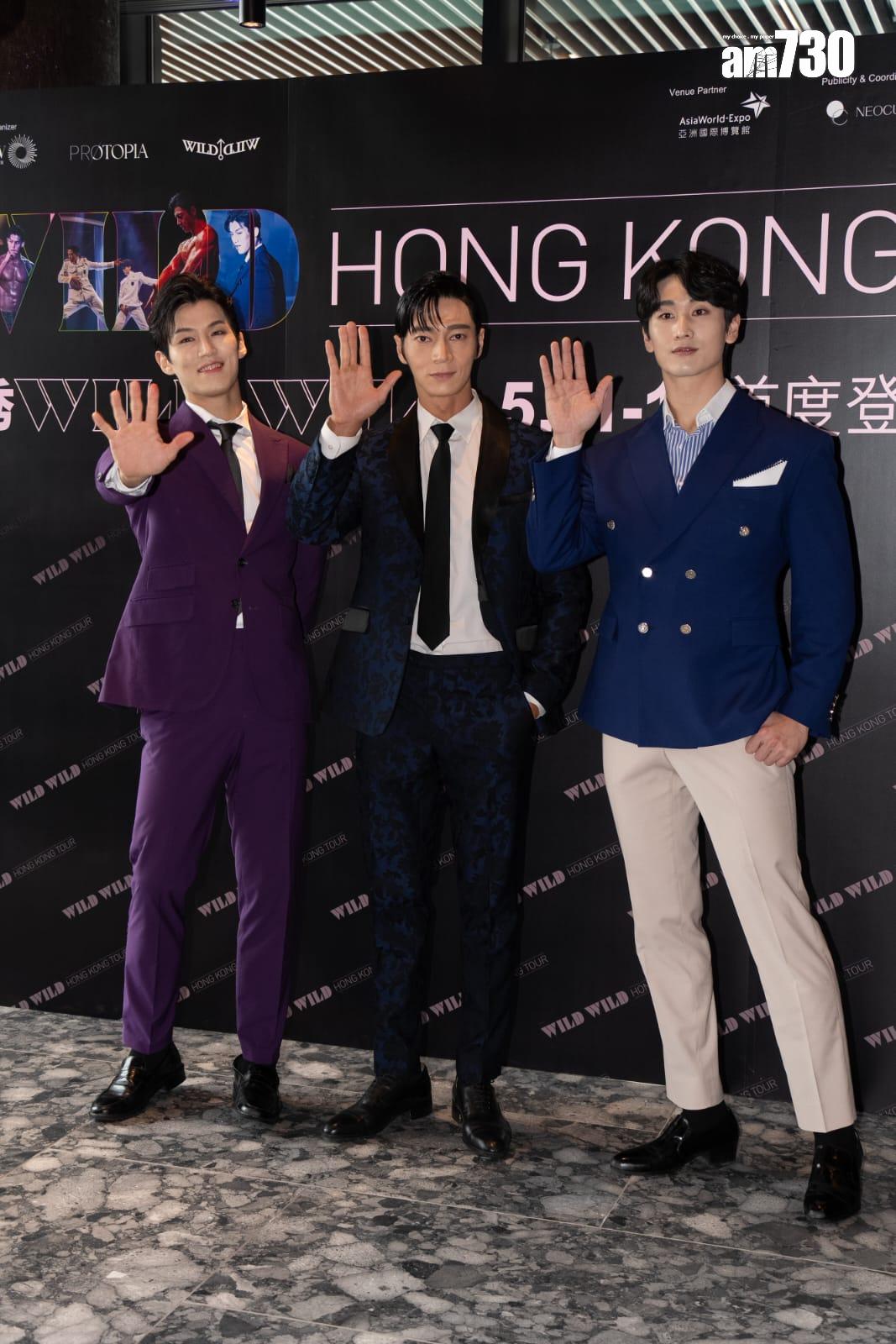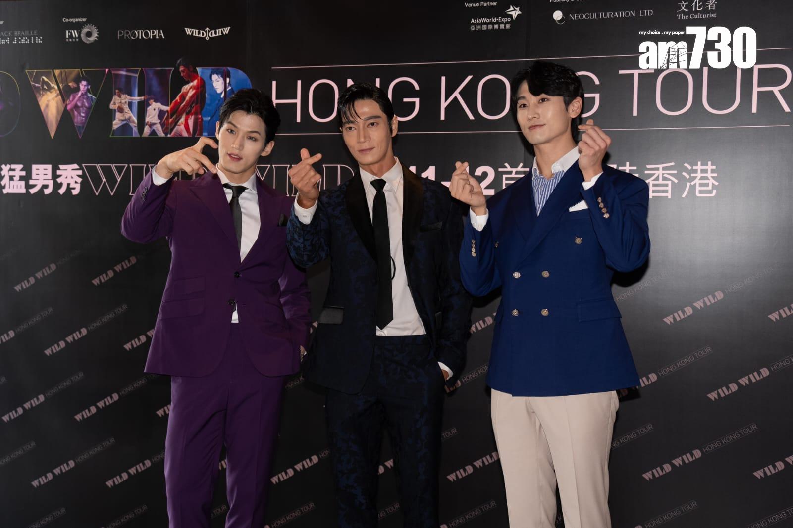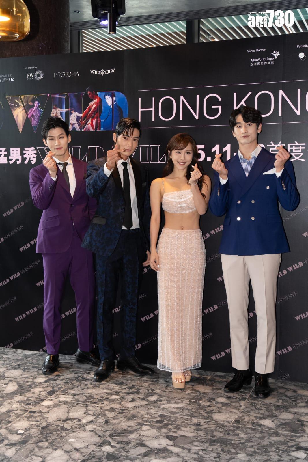 韓國人氣極高的猛男音樂劇《WILD WILD SHOW》將於5月11日、12日在香港亞博,其中有三場是女士專場,另一場則開放予男女觀眾入場欣賞,票價仍有待大會公布。 Wild Wild三位主力包括Netflix戀愛真人秀《Pink Lie》出演者「太陽」姜天一、李國榮及鄭漢三今日(14日)聯同DaDa陳靜一齊出席記者會,三子更乘搭開篷巴士遊覽香港、同粉絲打招呼。三子更即場大跳脫衣舞,並與DaDa來個近距離接觸,令她全程不敢直視,更怕羞到掩口笑。
