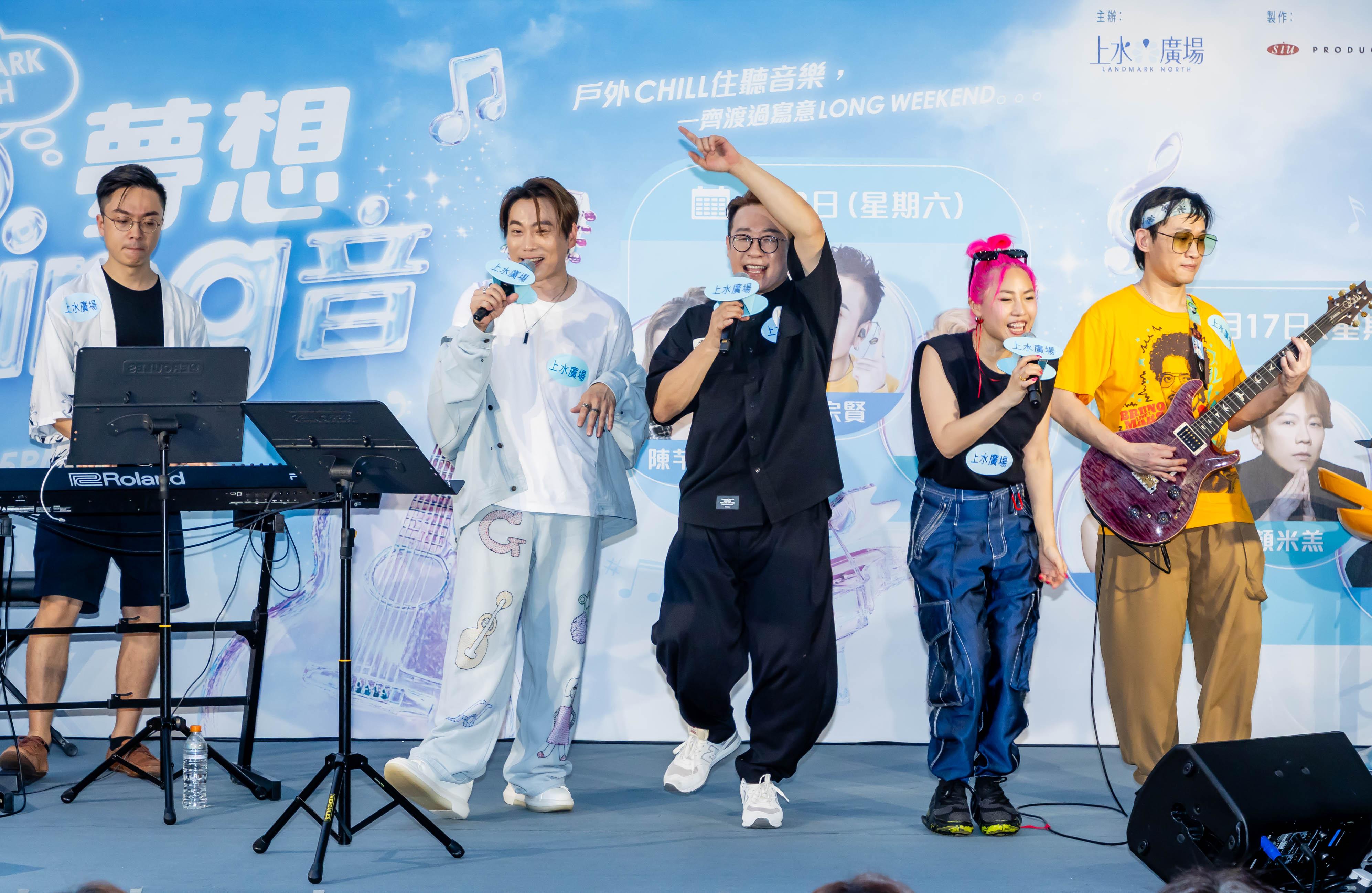 丁文俊(Angus)上周末夥拍顏米羔和陳俞霏進行戶外busking演出。三位唱將炎熱天氣之下落力演唱,吸引眾多粉絲前來打氣撐場,場面熱鬧。Angus指,今次是他首次與顏米羔同台,而陳俞霏則之前在渡輪晚宴上跟他合唱過。