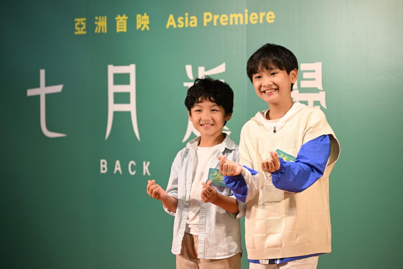MIRROR成員江𤒹生(AK)與「老闆仔」黃梓樂今日出席《七月返歸》首映禮。今次是AK首次在電影擔正做男主角,他表示很開心又緊張,至於扮演AK童年的老闆仔同樣感到開心,他表示希望可以跟其他MIRROR成員合作,他說︰「Tiger哥哥、Alton哥哥、Jer哥哥同Jeremy哥哥未見過。」