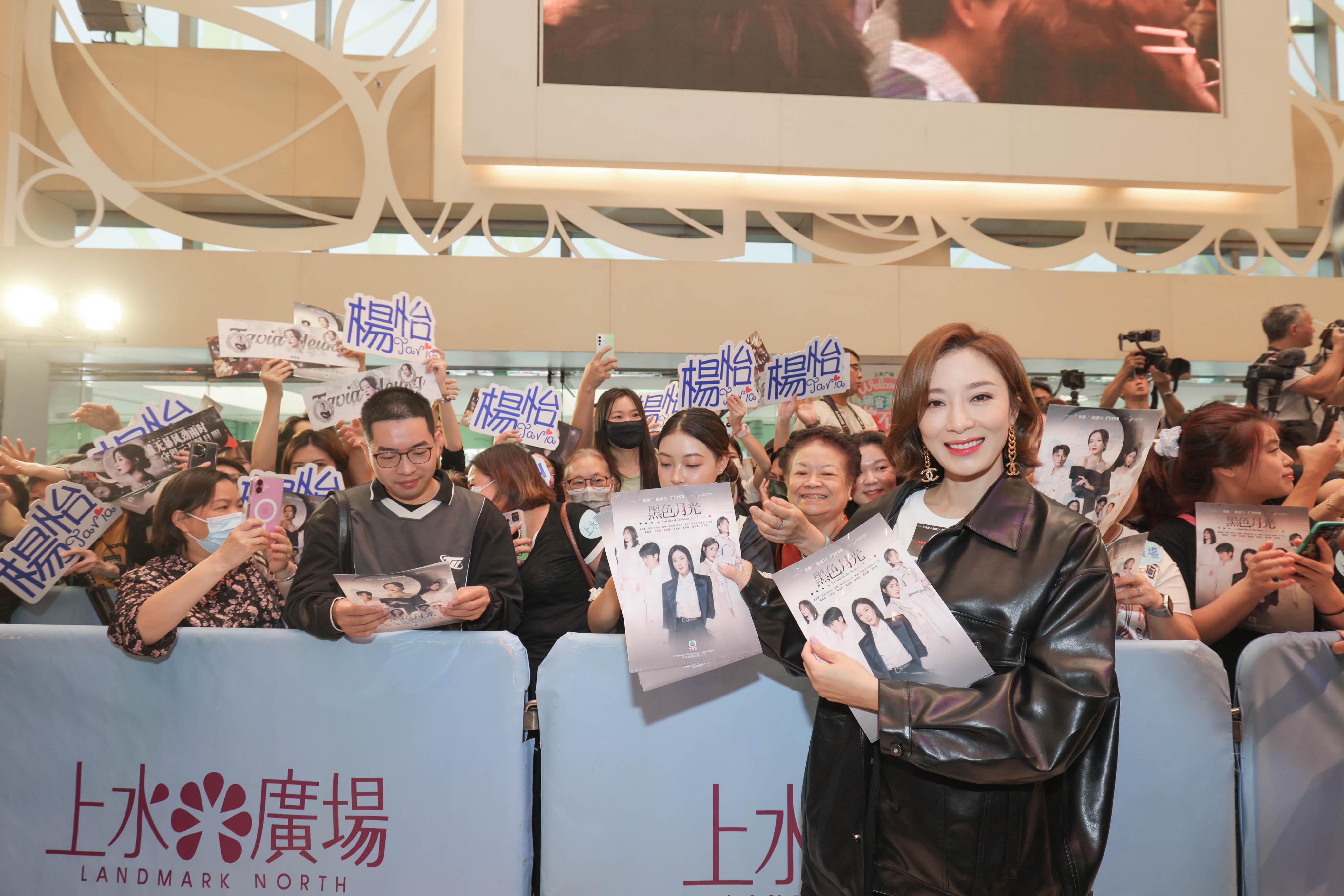 TVB台慶重頭劇《黑色月光》將於明晚播出,兩位好戲之人楊茜堯、林夏薇和馬志威等,聯同劇集監製關文深率領劇中演員,昨日現身上水廣場為《黑》劇宣傳造勢,兩位視后即場示範高超演技,引來大批粉fans和市民圍觀兼拍手歡呼。