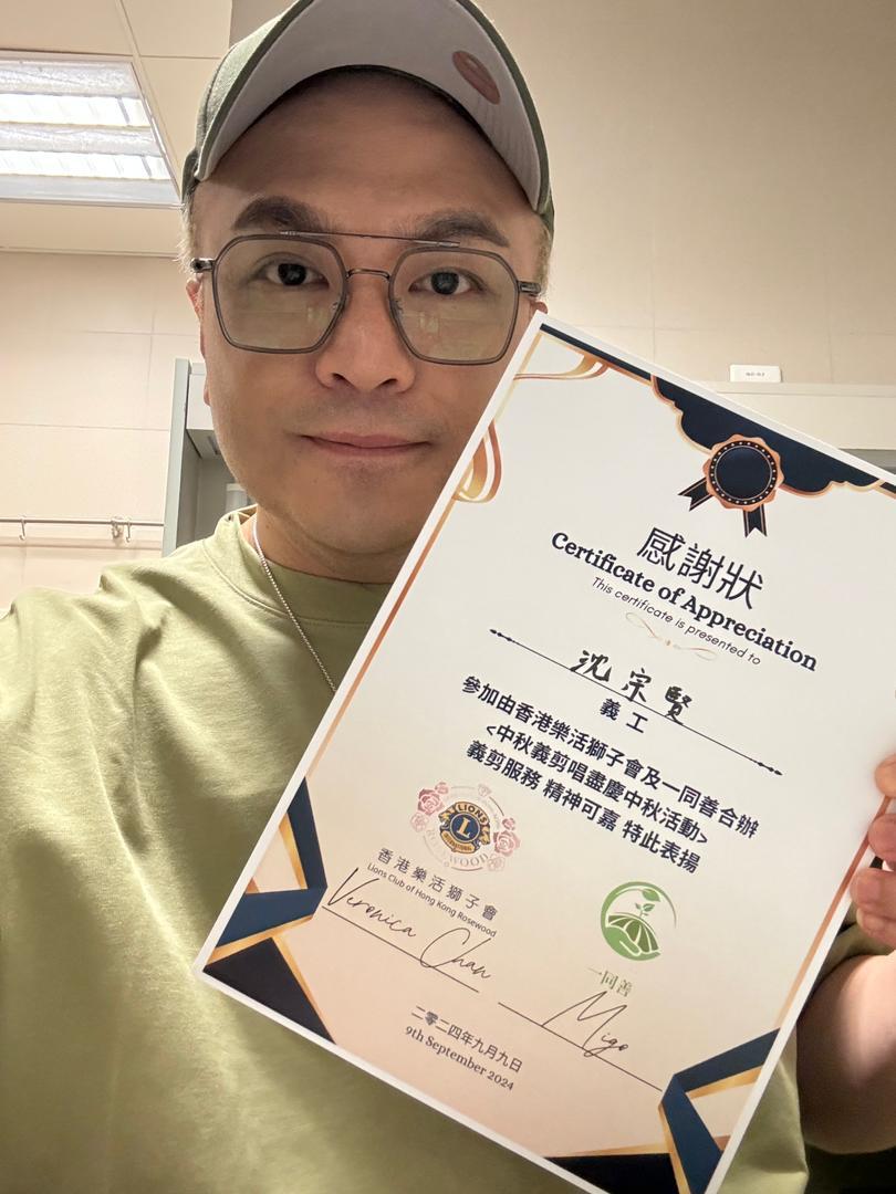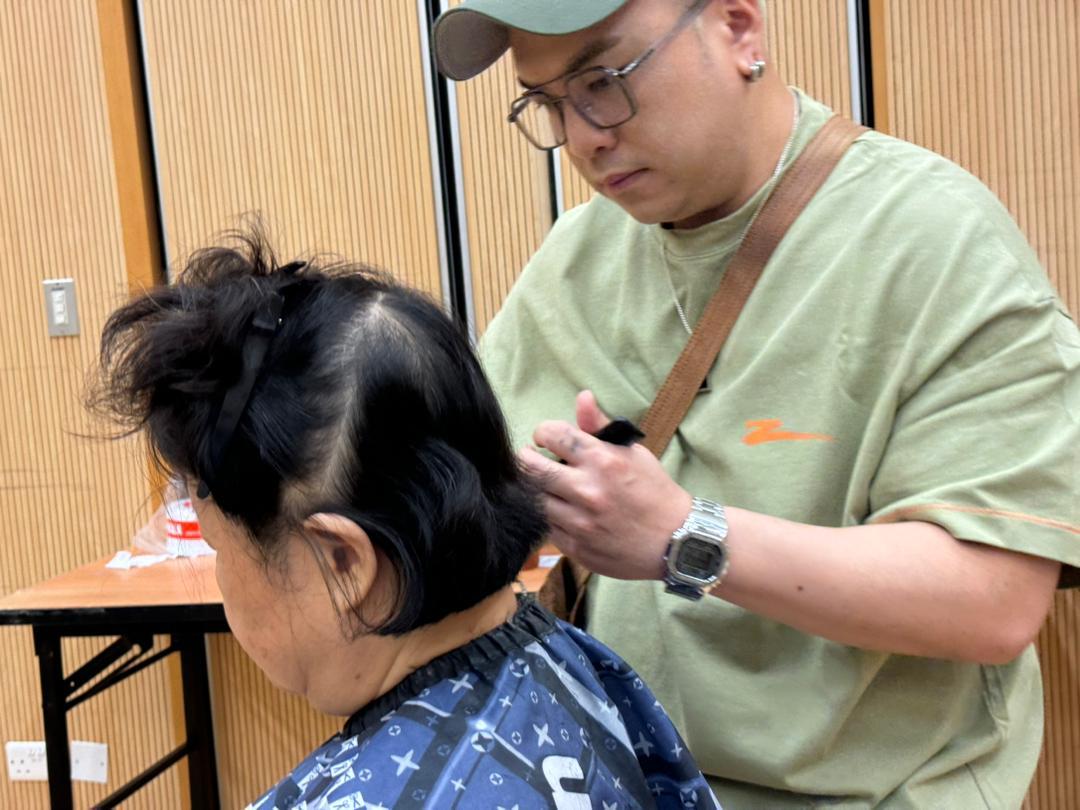 本身是髮型師的他日前更善用他的技巧,聯同幾位中二生,一同出席了一個名為「義剪唱盡慶中秋」的義工活動,在白田社區綜合大樓為超過200名長者剪頭髮,讓老人家能夠清清爽爽過中秋。