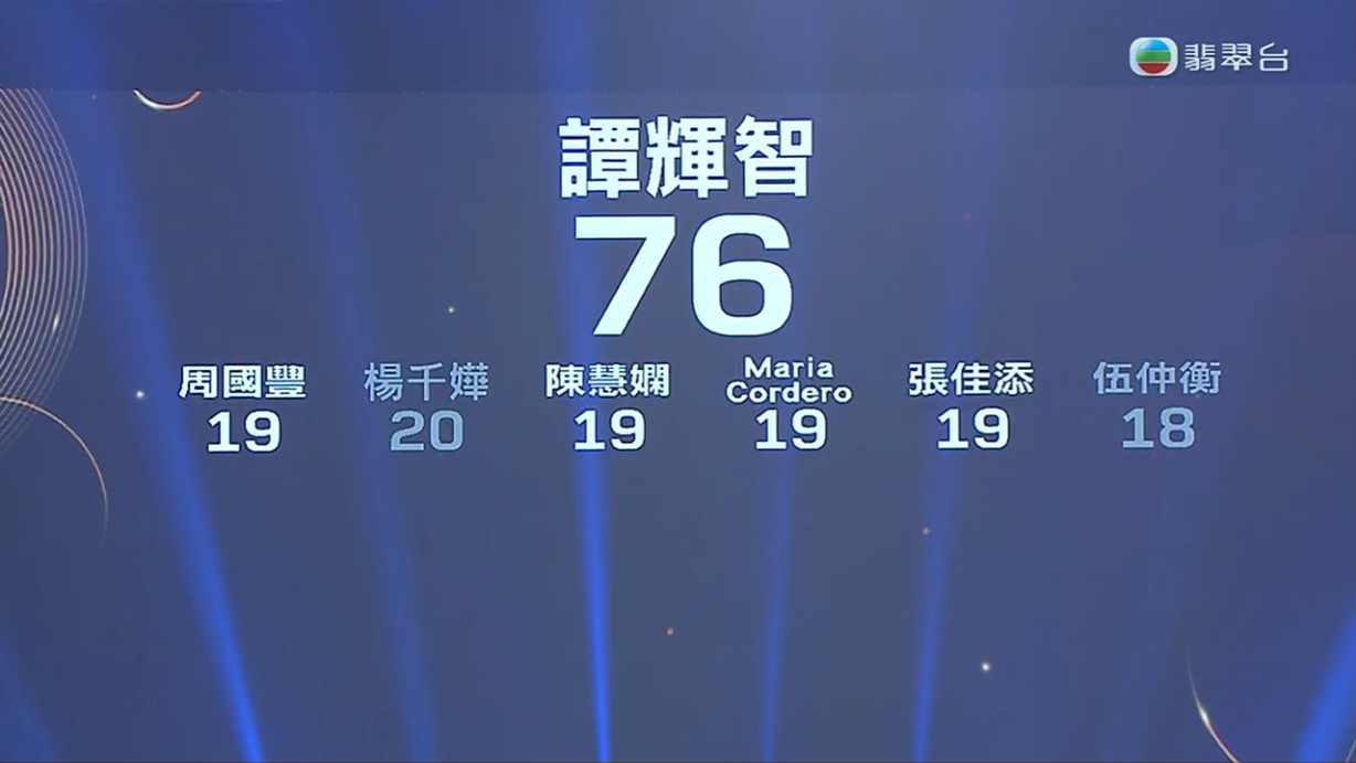 譚輝智在慢歌環節以76分排第一位。