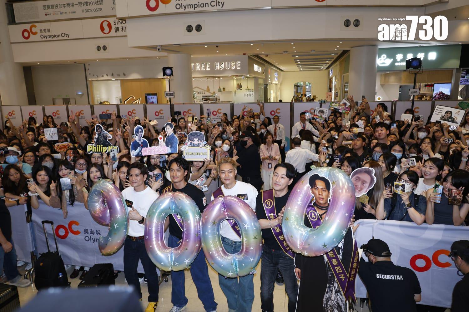 《九龍城寨之圍城》上映以來叫好又叫座,票房已衝破九千萬,林峯、劉俊謙、胡子彤與「王九」伍允龍,今日現身奧海城舉行的「城寨福利委員落區答謝見面會」,大批戲迷塞爆3層商場,場面虛冚,其中約800位幸運觀眾更可獲得近距離接觸四子,並送上禮物,四子亦慷慨地大派福利,派心、擊掌、飛吻,令粉絲滿載而歸。