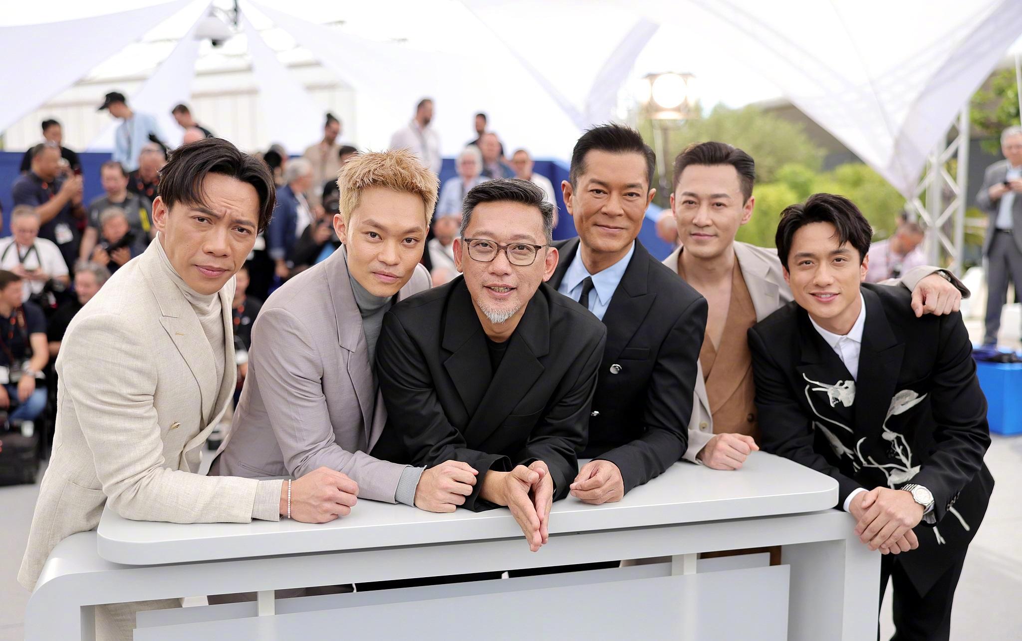 他們前往康城影展活動前,更在當餐廳一齊撐枱腳,並合照留念。此外,從網上的影片見到,眾人會見傳媒時難掩興奮心情,他們先影多個不同組合的合照,繼而在影個人獨照。古天樂等人都是穿上西裝現身,但林峯的打扮就比較突出,灰色西裝外套下,穿上啡色的套裝,更露出心口,對比隊友來說,他是最「性感」的一個。