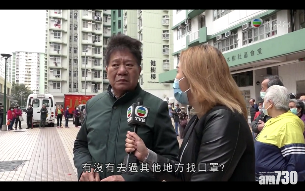 口罩供不應求,就算連日來有不少商戶有口罩提供,仍供不應求。日前無綫《東張西望》播出梨木樹一眾排隊取口罩的老人家,其中一位沒有戴口罩的伯伯,受訪時表示自己家中沒有存貨,未幾就流下男兒淚表示︰「冇得擔心㗎⋯咪出少啲街囉。」他又指在不少地方排過,但也是空手而回。片段引來勁大迴響,不少人替片中的伯伯難過。荃灣區議會主席陳琬琛得知事件後,立即送上5個口罩,為伯伯在絕望中送上一點希望。