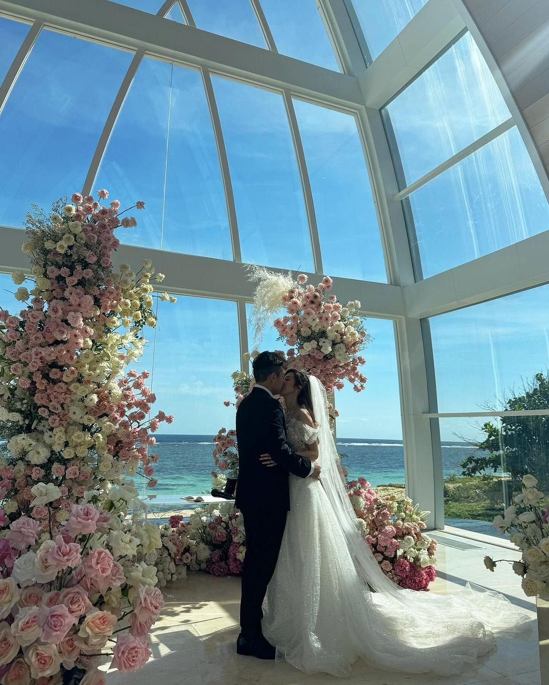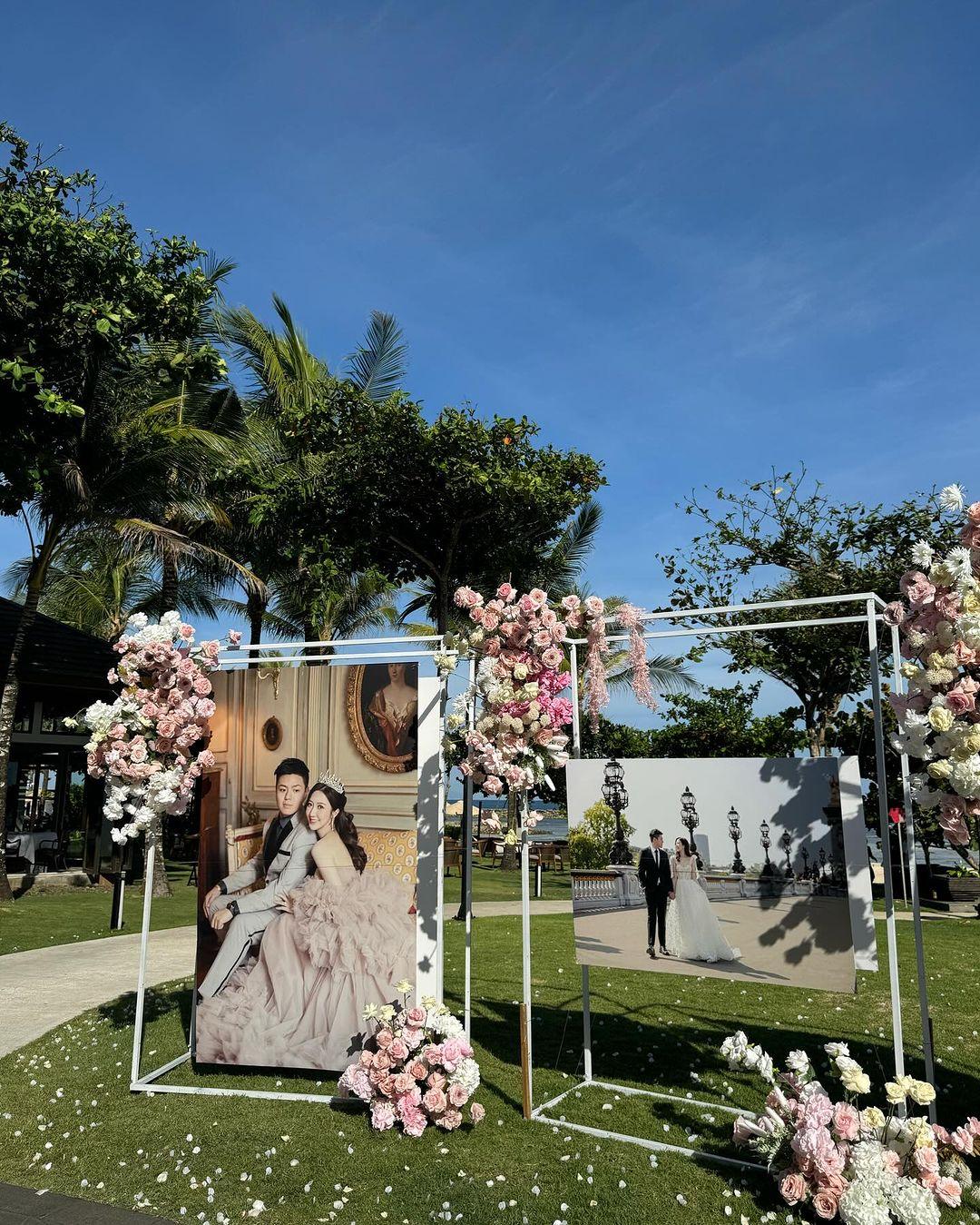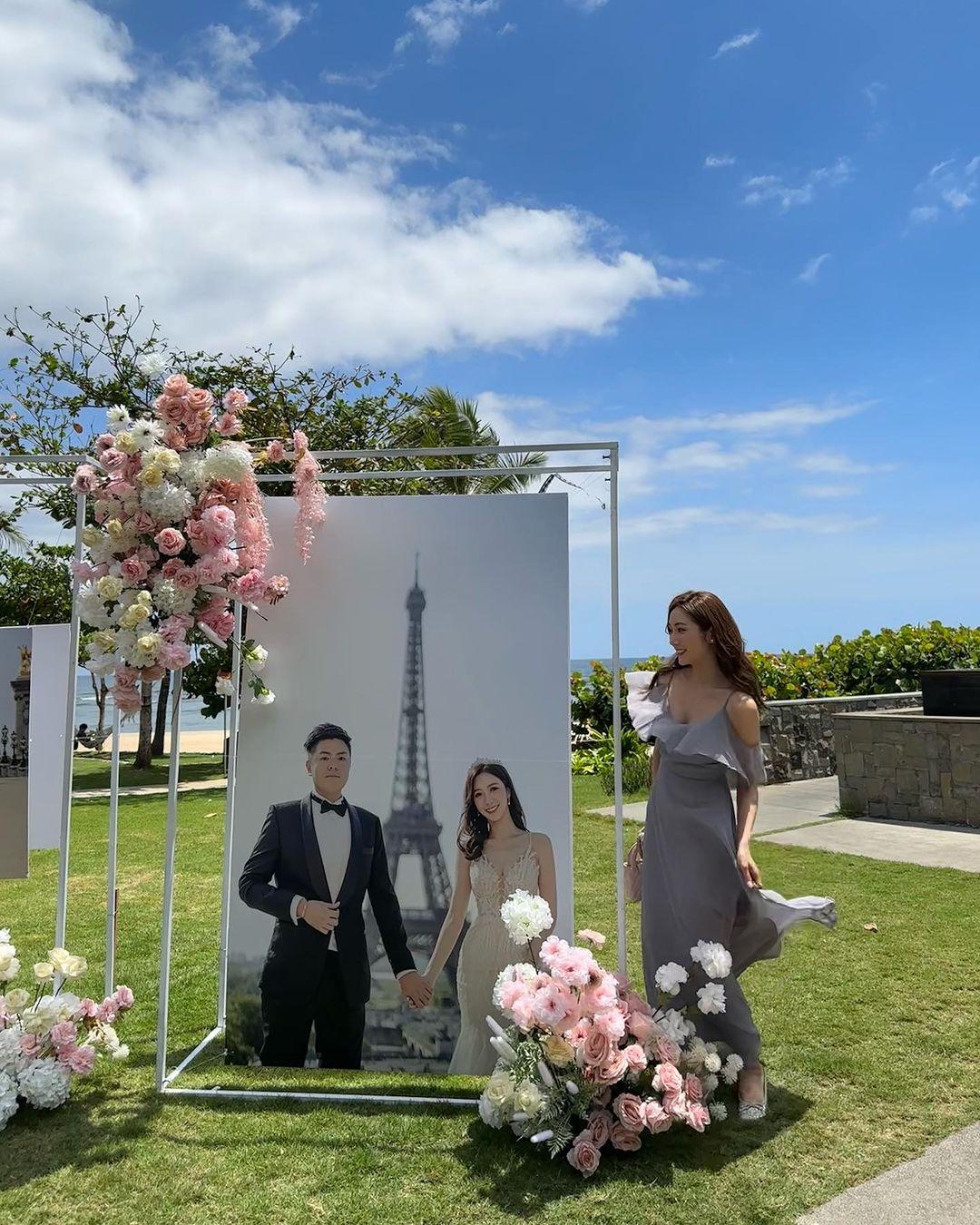 何依婷的姊妹陳詩欣、蔡嘉欣、鍾晴、模特兒譚嘉儀,婚禮司儀鄭衍峰輪流分享婚禮當日盛況。從他們的照片及影片見到,頭戴后冠的何依婷當日與老公Cedric Lam坐馬車進入會場,儼如公主和王子,會場的草地擺放著二人的婚照。其後何依婷由親友陪同步入玻璃教堂,二人完成證婚儀式之後親吻對方。