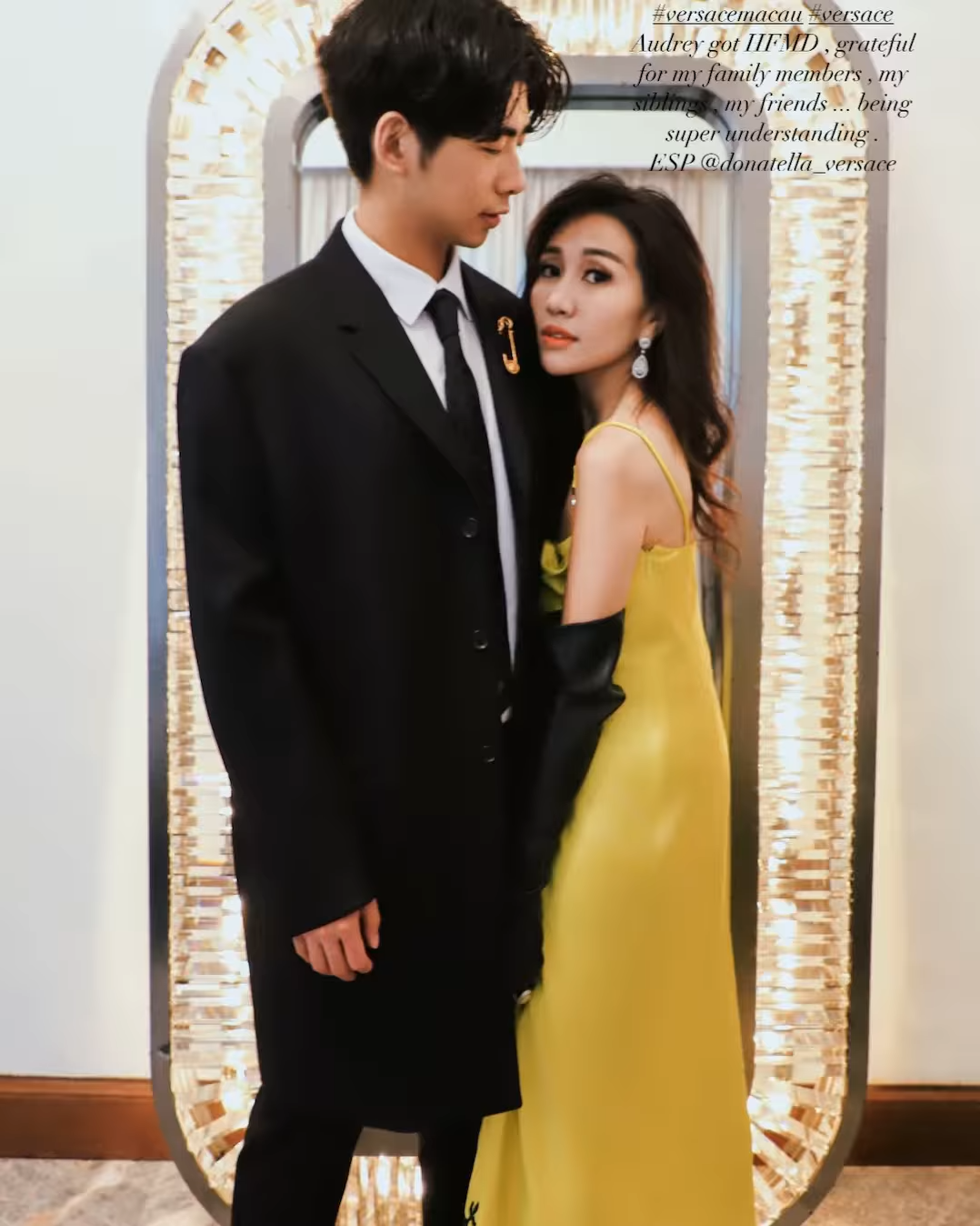 不過,四房千金超盈當日未有現身,而今日凌晨她貼出跟老公的照片,透露跟老公原本準備出席活動,並已盛裝打扮,但因為囡囡辛千覓感染手足口病,未有現身。她感激家人及朋友體諒,更特別tag了為她設計造型的馬天佑。