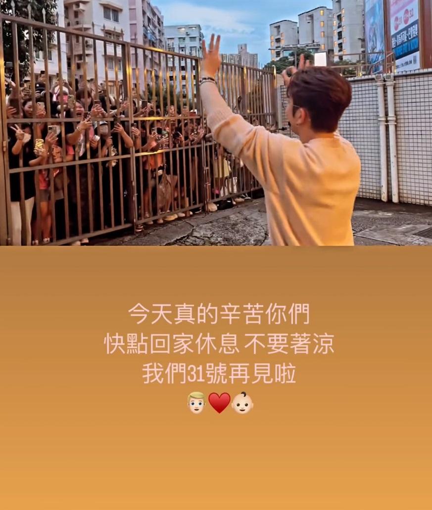 教主冒雨同粉絲打招呼,仲發文叮囑不要冷親,好窩心。