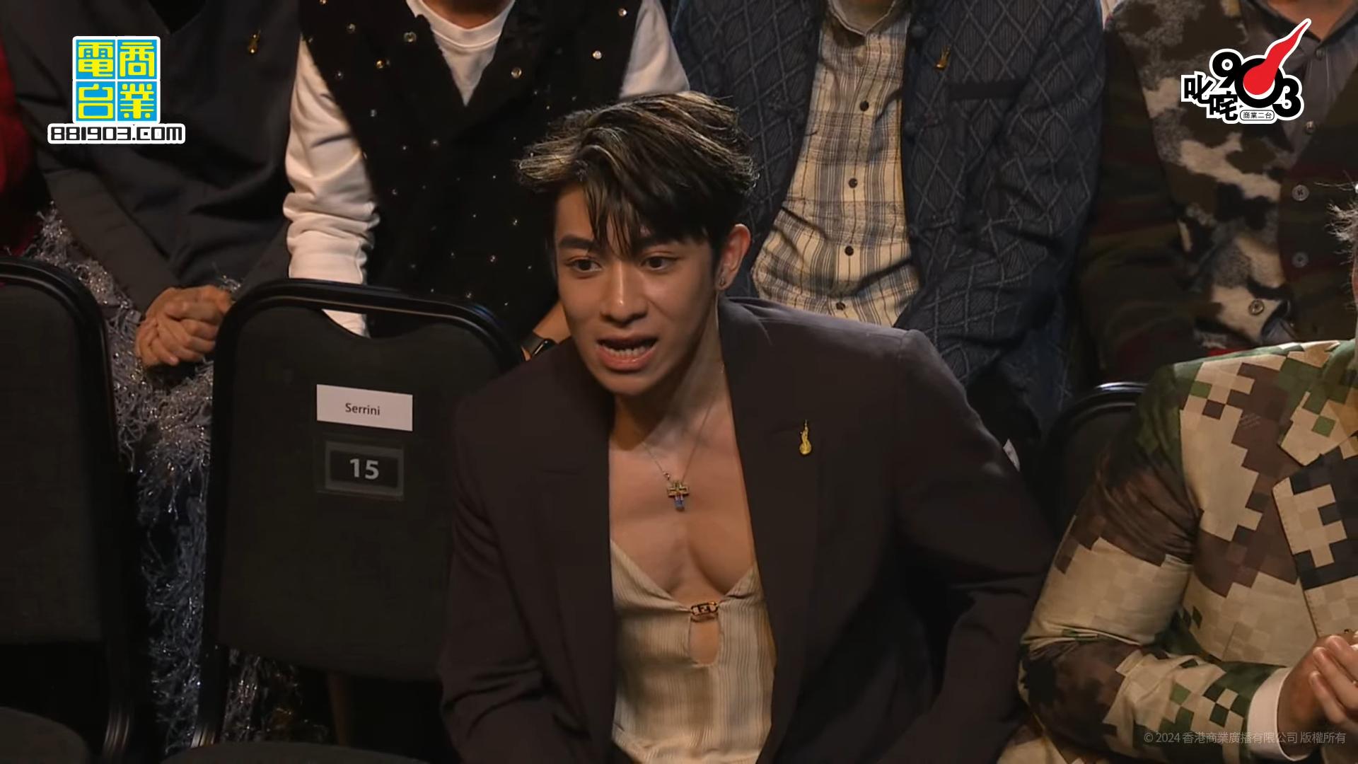 MC獲頒男歌手銀獎,解釋自己演繹《世一》前,因為在食喉糖,沒有想過會上台,所以強行咬碎,擔心表現或會因此而受影響。他又稱自己曾是BUSKER,很開心樂壇有歌手推出不同歌曲,令他可以唱、可以賺錢,到現在自己成為歌手,要好多謝曲、詞、編、監做很多很好的音樂。林家謙則冧莊男歌手金獎,他表示2023年獲很多機會肯定又同時否定自己,獲益良多。