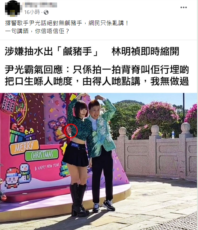 不過,自尹光殺入叱咤之後,有不少網民開po狙擊他,由昨日(25日)起更有網民不停提起尹光回應懷疑非禮林明禎一事,而且這些網民都是用同一張圖,並認為大家不應該投尹光,甚至有相似的帖文批評投給尹光的人不是真心。