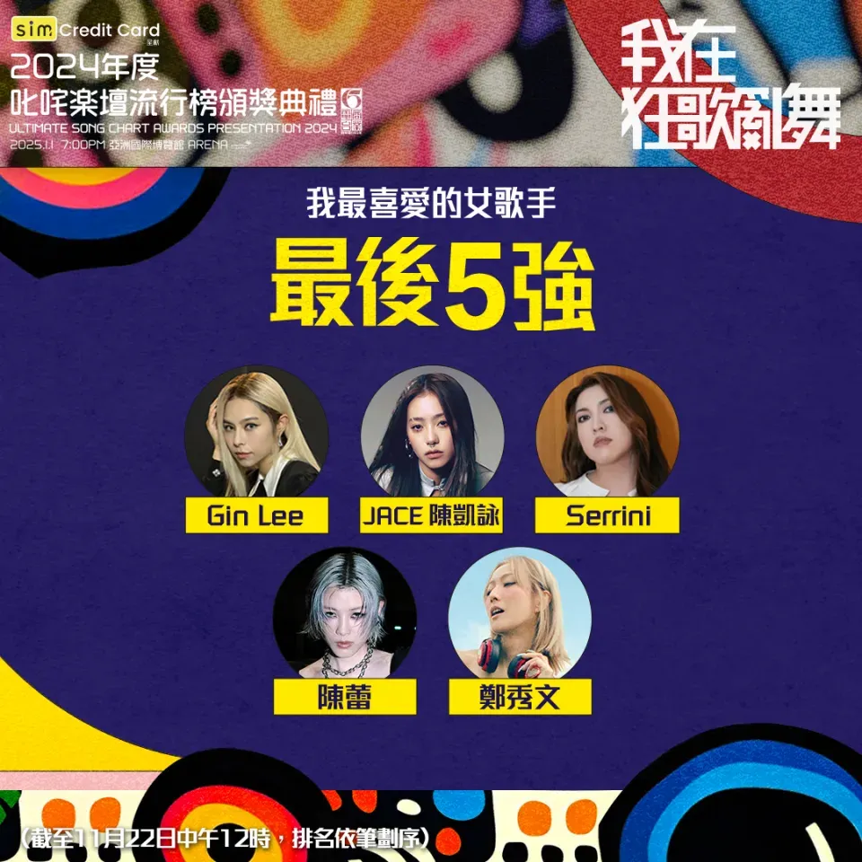 叱咤2024|叱咤樂壇我最喜愛的歌曲最後五強 男女金YT周殷廷、Serrini大熱