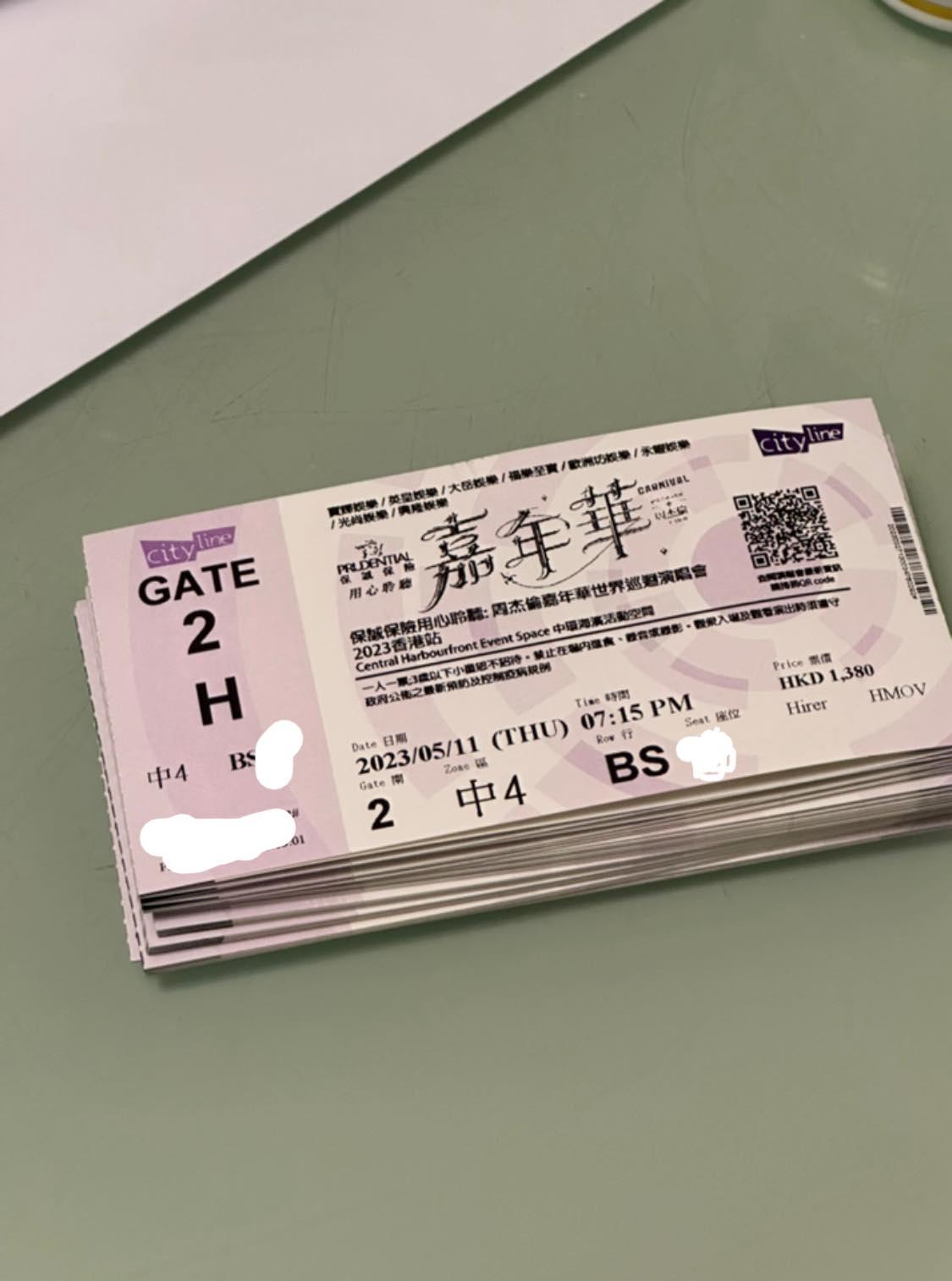 演唱會舉行在即,網上仍有大量黃牛門票出售,當中有不少人展示一疊疊的門票,聲稱是「靚位」及「真飛」,甚至附上紫外光燈照射下的防偽標誌,強調其手上的「黃牛」飛是正貨。其中最貴的$1,380門票索價近萬元,依然有不少人表示有興趣購入,當中包括大陸歌迷。