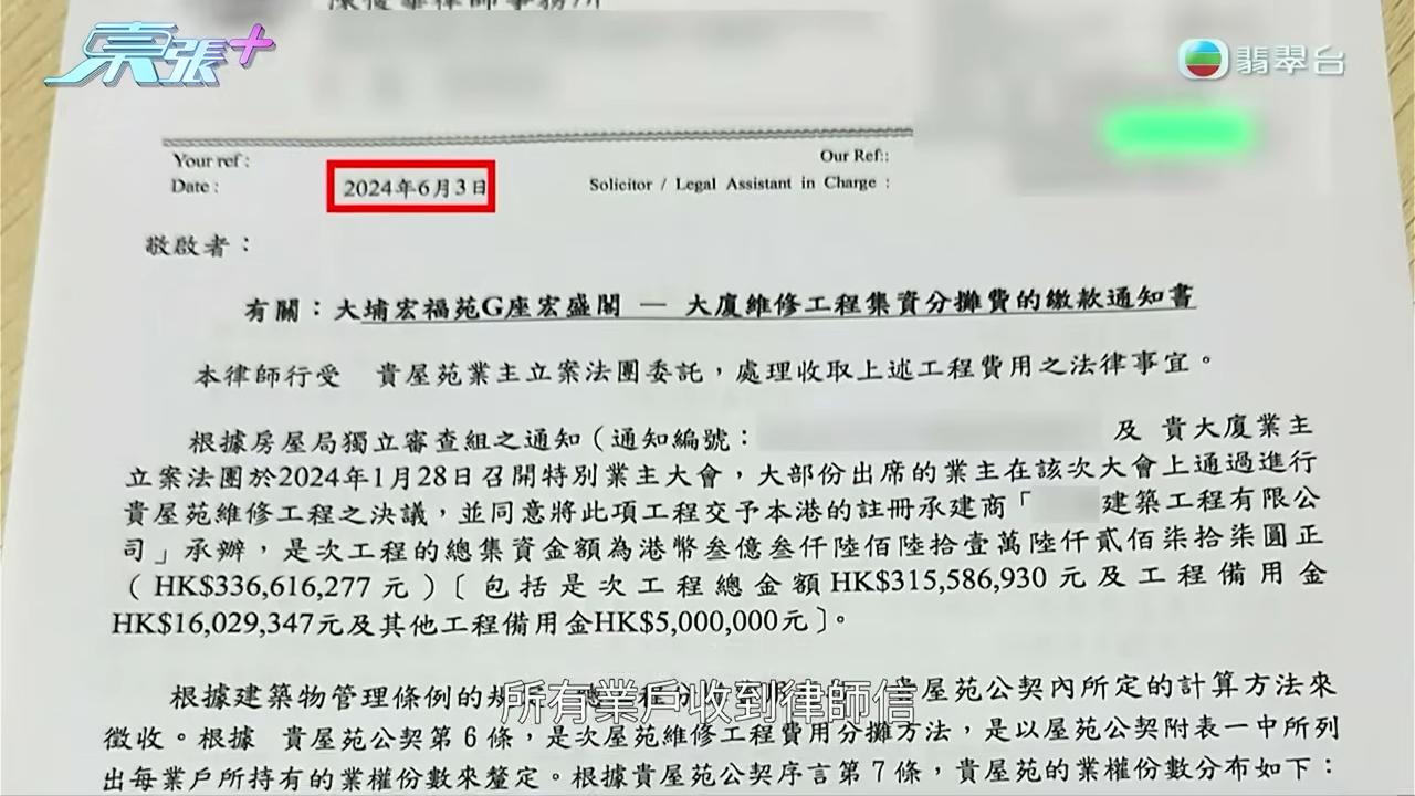 《東張西望》訪問數名業主,他們均質疑 「黑箱作業」,更有反對維修的業主欲召開特別大會時,被法團發律師信警告要支付訟費。當時《東張西望》拍到多名業主質問法團主席,並要求旁聽會議,但主席拋下一句「旁聽係無意思」,小業主不停拍門,法團仍然開閉門會議。