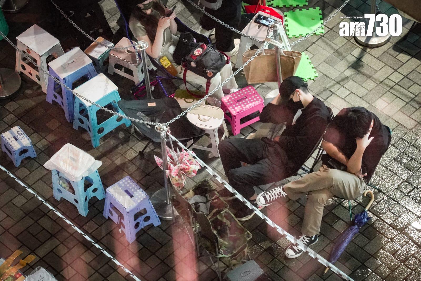 昨日有歌迷收到消息,四子將於明天到太古城開記招,隨即到商場門外霸位,大量椅子,紙皮在商場外,上面更寫有名字及人數,保安亦架起圍欄分隔出行人位置。由於今日下雨令在場的紙皮濕掉,有不少歌迷曾一度往返商場外整理。及至晚上,愈來愈多人聚集並坐在椅上準備通宵留守,以便明天可以霸到靚位為偶像造勢。