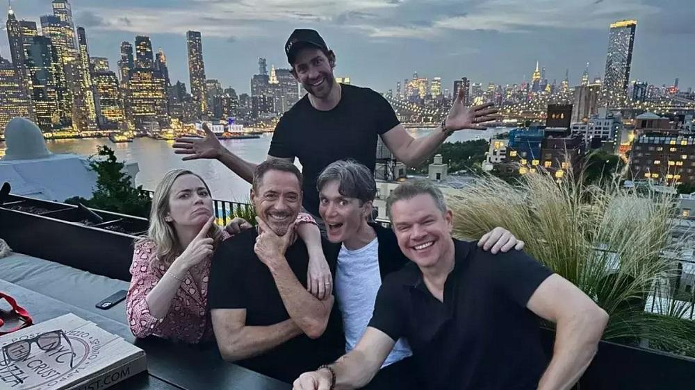 首映禮上,羅拔唐尼與Emily Blunt夾實Cillian Murphy引佢笑。