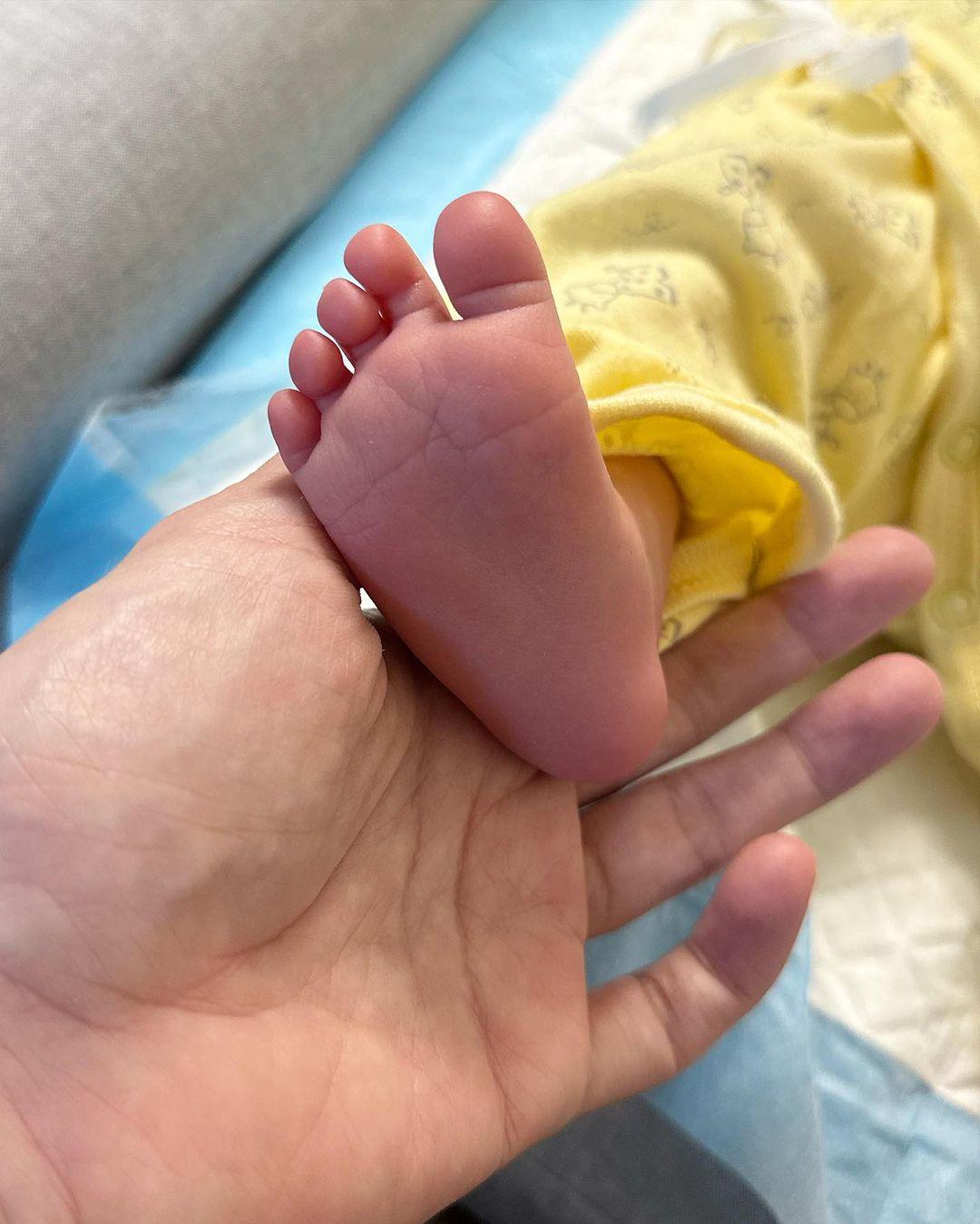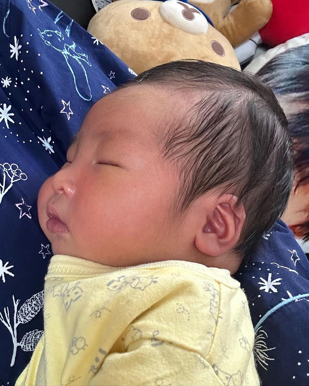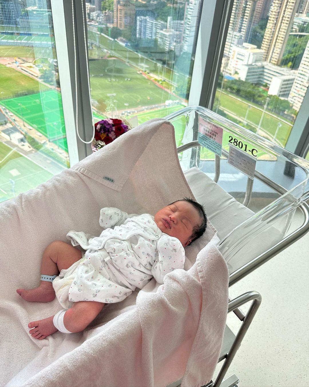 從她分享的照片見到BB非常重磅,估計體重近9磅。面珠及大髀非常好肉,看上去跟1歲大的BB差不多。她曾表示BB遺傳了老公骨架大的特質,加上自己食量大,有時更會食兩個碟頭飯才夠飽。她稱哥哥出世時,體重達9磅,頭圍爆標令她要開刀生,今胎也是選擇剖腹。