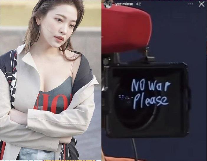 第一位發聲的韓流偶像,Yeri寫上「拜託停止戰爭(No War Please)」。