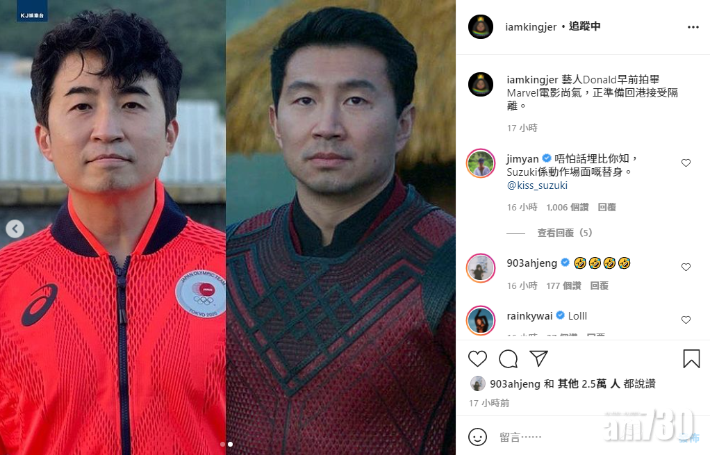 當奴其後在IG上載多張《尚氣》的電影海報,及劉思慕為外國雜誌拍攝的執面,最後加上身穿白色背心的自拍照,不少人笑言「已經分唔清邊張係改圖」,「最後一張叫尚氣唔接下氣」。他更特意tag了Marvel及《尚氣》的官方IG帳號︰「你班百厭星好啦,儲齊一套。#尚氣#劉慕思#梁朝偉#如果我有份拍Marvel就算扮樹葉都肯#就係楊紫瓊使出功夫時轉動的樹葉#如果真係可以同梁朝偉合照就正」