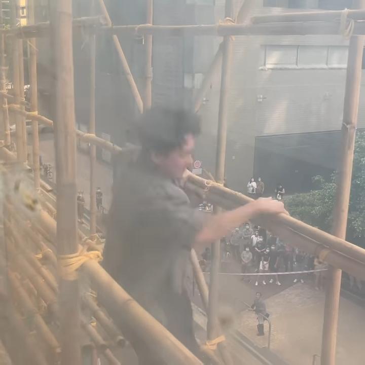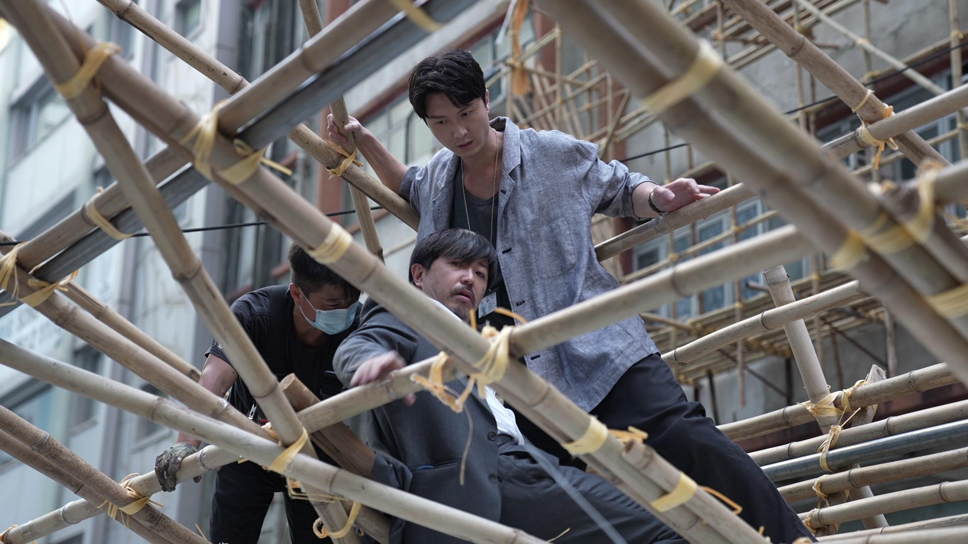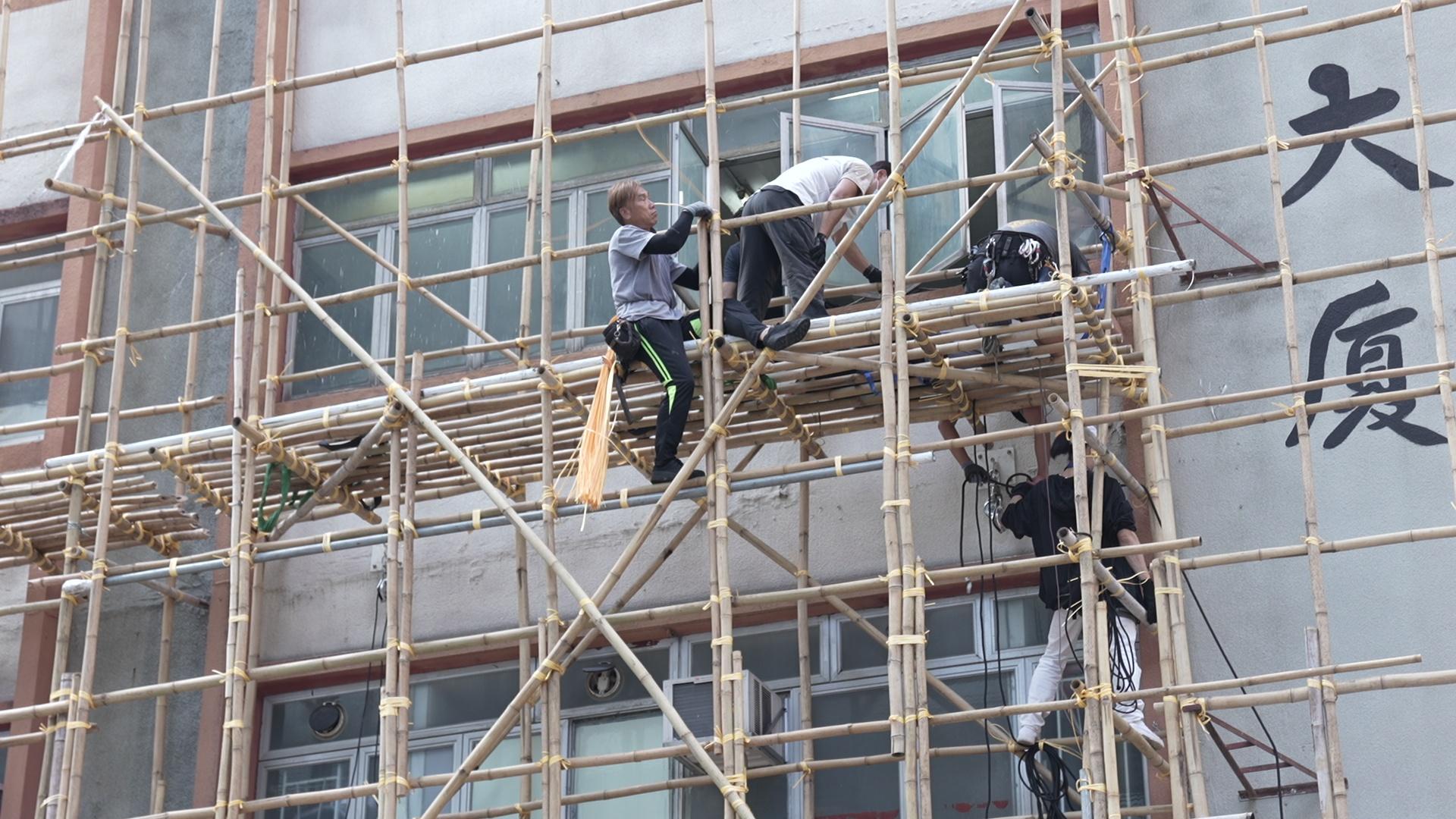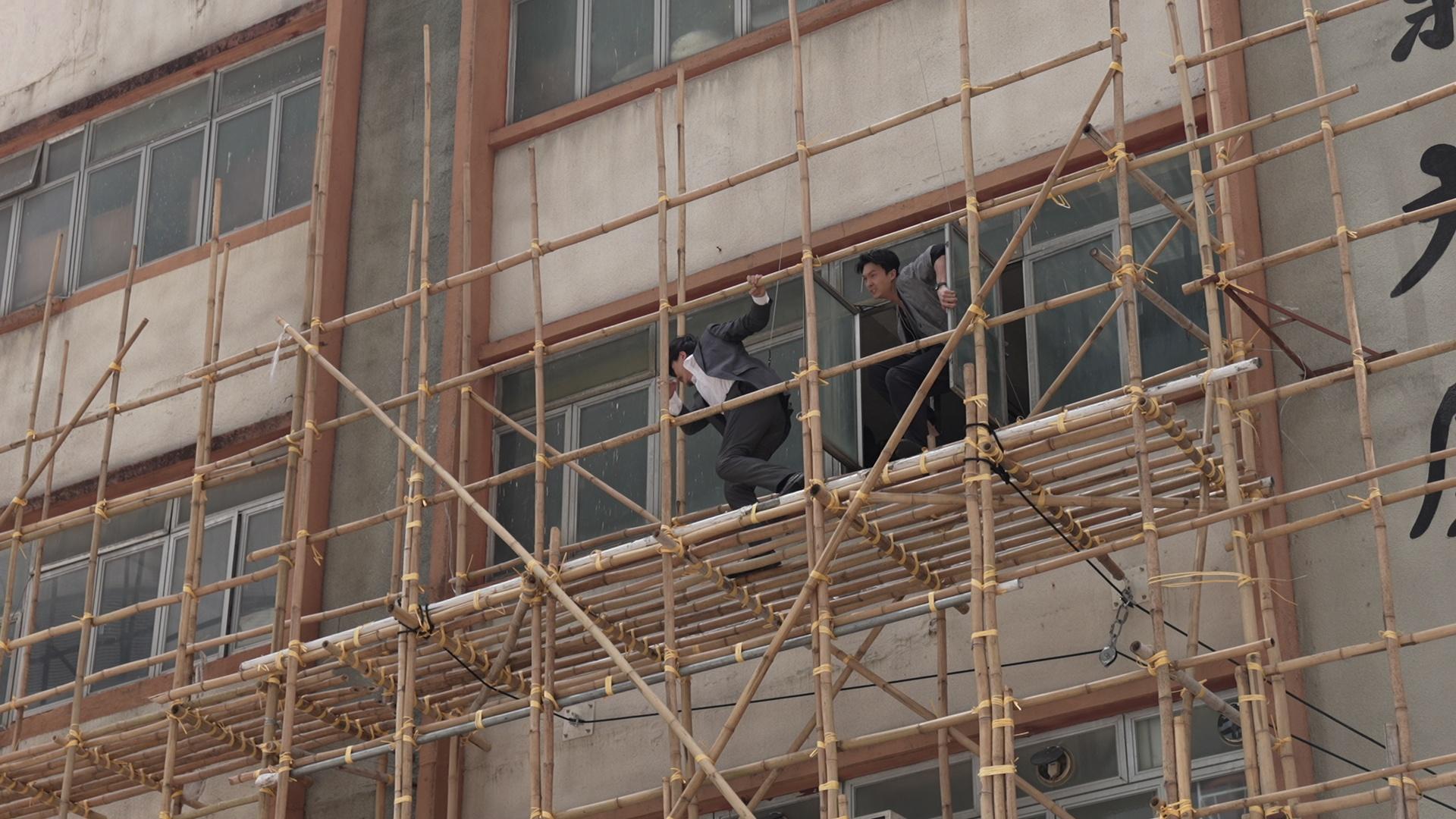 至於棚架追逐戰,則由飾演O記高級督察韋Sir的王浩信、及首個單元個案大反派的江榮暉親身上陣。二人先從單位內相繼飛躍出窗口,再在狹窄的棚架中穿梭、追逐及埋身肉搏,其間還要在下塌的棚架中扭打兼大聲講對白,絕對是體力、演技及記性三重考驗。由於場口拍攝有一定難度,劇組除了安排替身,正式埋位前亦仔細與兩名大部分時間親身上陣的演員講解走位及注意事項,王浩信全程除了用心聆聽,正式「上架」前又與武指鑽研好每個動作,正式拍攝期間亦有兼顧拍檔江榮暉的安全,相當專業。
