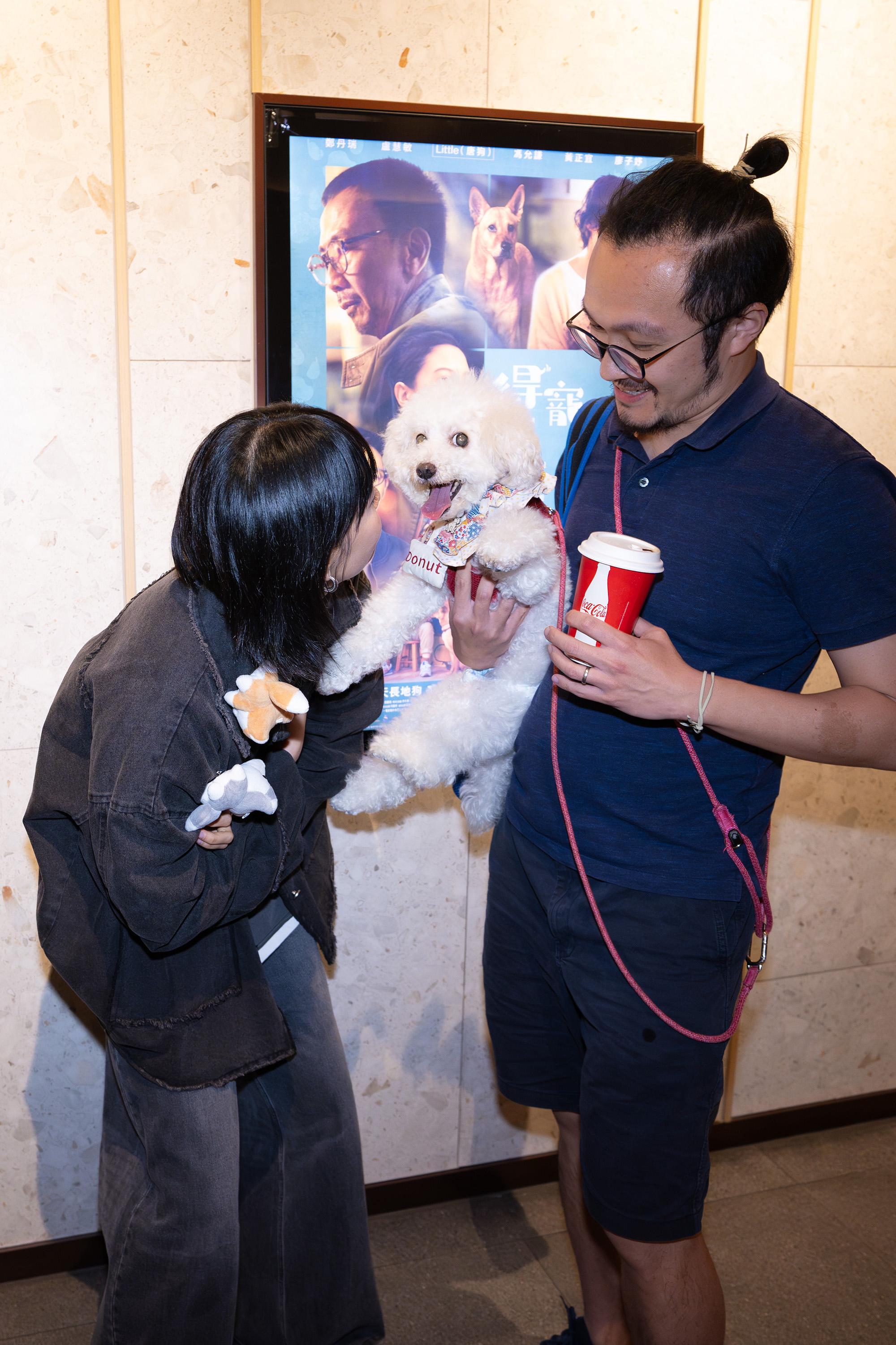 前晚Amy再出動到將軍澳的戲院「人寵共融」場次謝票,有些身形較大的狗狗坐在主人座位旁邊,有些小狗狗被主人抱在懷裏,場面溫馨。其中有觀眾帶著兩隻狗狗入場,她說:「好有共鳴,尤其是漁護署嗰幕,因為佢兩個(指狗狗)都係從漁護署救出嚟,所以我由頭喊到落尾!」而另一位觀眾說:「我都係領養唐狗,好有共鳴,呢部電影好真摯。」