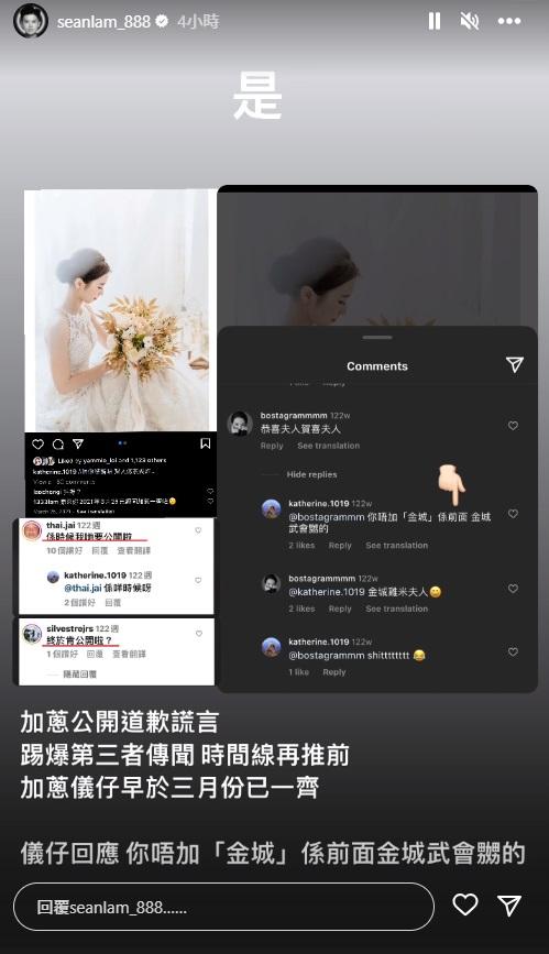 富二代KOL Sean Lam昨日在ig限時動態播出加蔥及阿晶生前的錄音。第一部份為阿晶與加蔥相討要不要小朋友的問題,錄音聽到加蔥說︰「咁你諗下,睇下要定唔要。」阿晶用文字回應:「可是你是不是不想」加蔥就回答:「我唔想,不過都會尊重你,我搭12點船呀老婆。」阿晶續表示自己要再想想,她說:「如果我哋兩個唔一致,生落嚟佢都唔幸福,見面先傾。」
