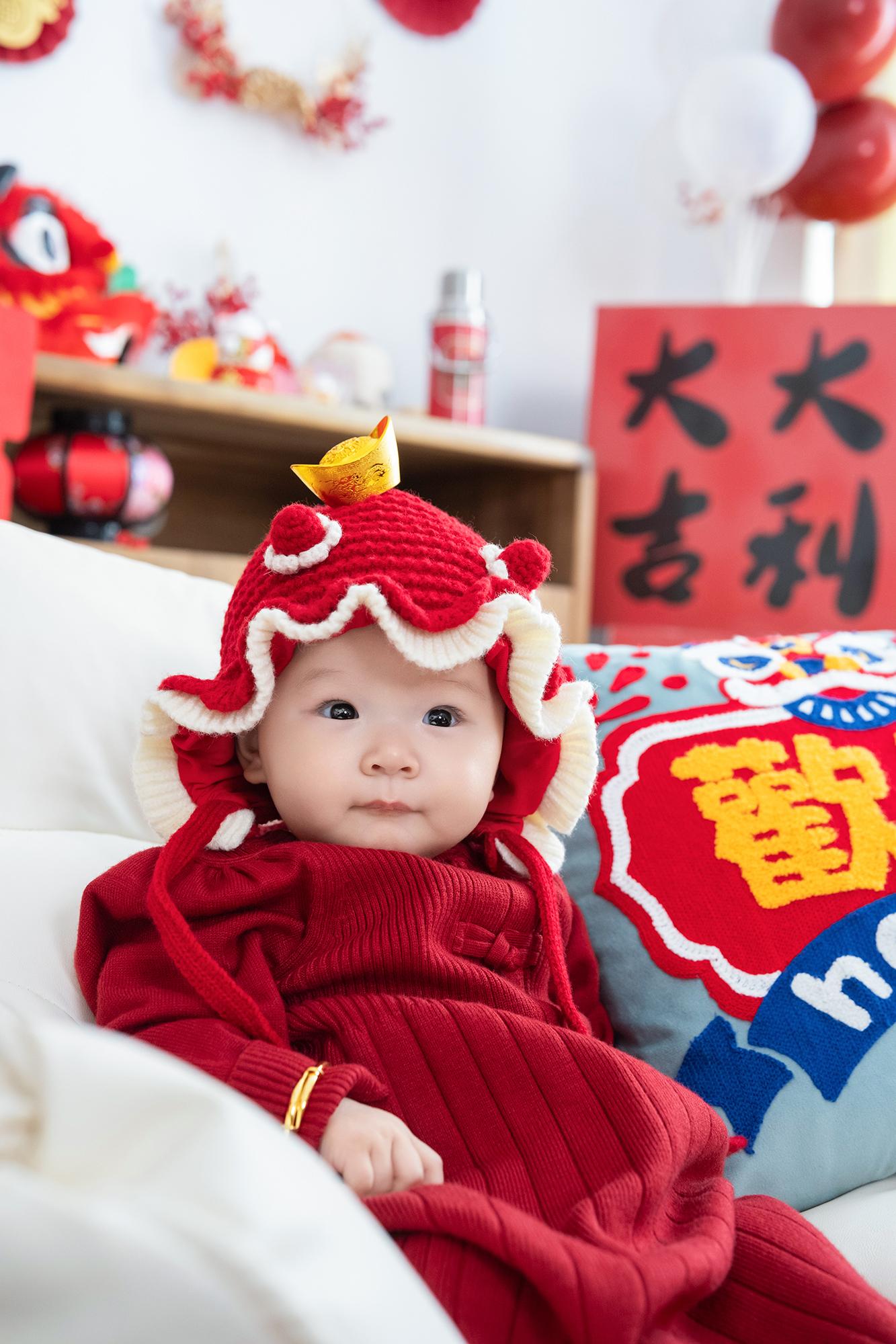 文凱玲(Connie) 去年與拍拖5年的圈外男友Jason結婚,同年順利誕下B女,雖然B女早產,但現時已經長得肥肥白白。Connie更特意安排囡囡及老公一齊影張充滿新年氣氛的全家福,相中見到他們一家三口穿到紅噹噹,囡囡更笑容滿面。Connie透露B女成日都會望住他們笑,現時她主力湊囡囡,而另一半放工、放假時也會幫手。她指囡囡每當肚餓的時候,便會找她,而想玩的時候便會找爸爸。