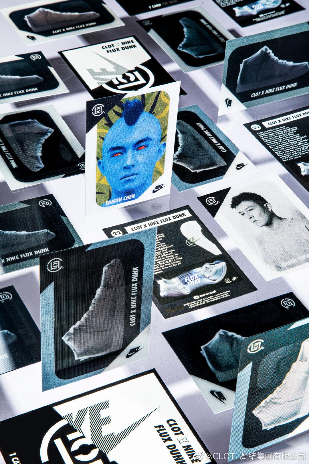 事隔一年,CLOT與Nike合作推出CLOT x NIKE FLUX DUNK鞋款,這次鞋面採用了光柵物料,讓鞋身的鉻銀色隨著光暗變化與欣賞角度漸變。今次他們合作還推出了一系列6款收藏卡,其中兩個特別版更會有陳冠希的親筆簽名,今次聯乘波鞋售價為1,099港元。日前微博有不少帖文大談陳冠希與Nike的合作,大陸網民表示有意入手,但得知要到官網抽籤,感慨非常難買。